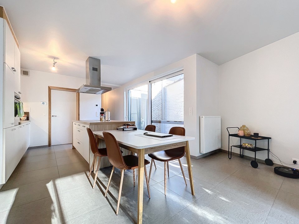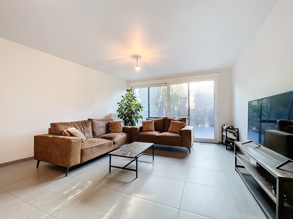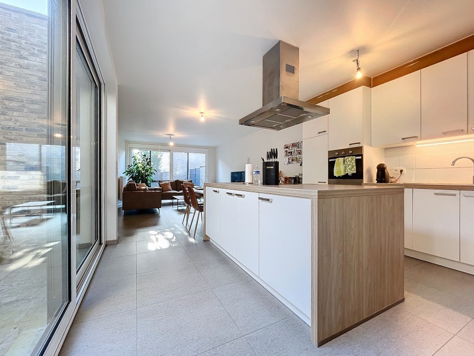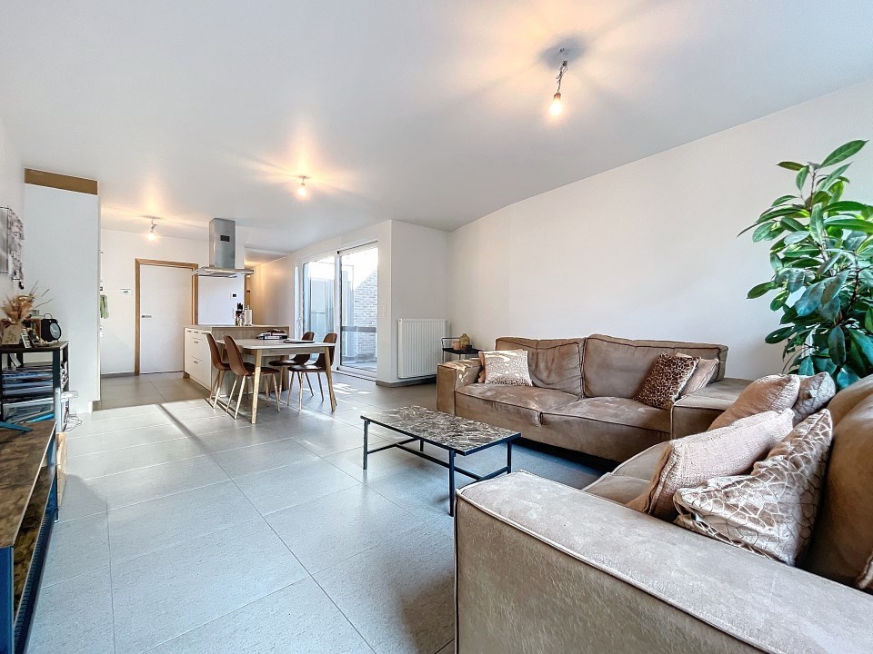 Via de inkom, komt u in de zonnige leefruimte met ingerichte open keuken. De leefruimte geeft via een schuifraam toegang tot het groot terras.