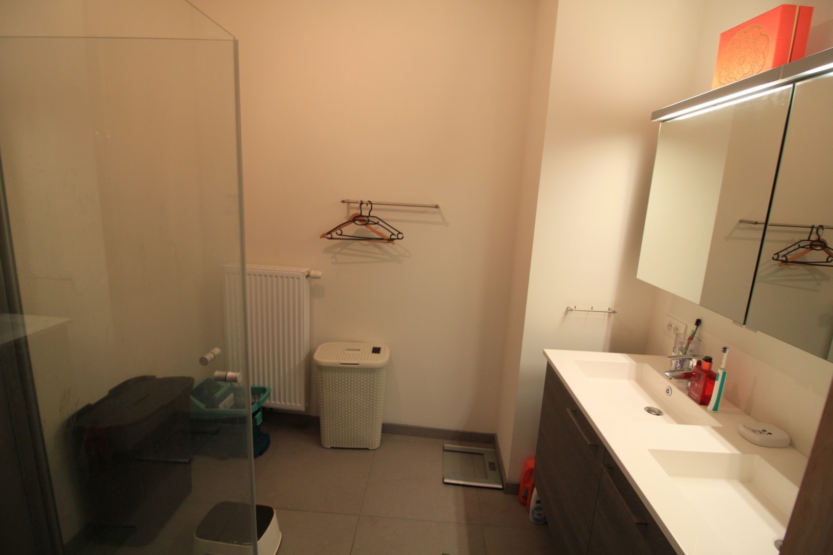 Dit ruim nieuwbouwappartement op het 1ste verdiep (135 m²) is gelegen vlakbij het marktplein van Oostnieuwkerke. Het appartement omvat inkom, toilet, ruime leefruimte die u via het schuifraam toegang biedt tot het Zuid-West gericht terras met berging, open ingerichte keuken, berging, 2 ruime slaapkamers (waarvan 1 slaapkamer met een terras), badkamer (dubbele lavabo en douche). Tevens is er een carport bij het appartement voorzien! Syndickosten: 30,00 EUR/maand. (EPB E53 - score: 85,00 kWh/m²)
