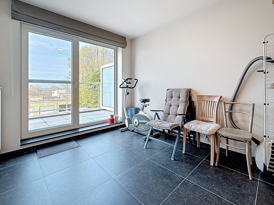 Dit heel ruim en recent appartement omvat een lichtrijke leefruimte, open ingerichte keuken, berging, toilet, badkamer (lavabomeubel en douche), 2 slaapkamers én een terras.