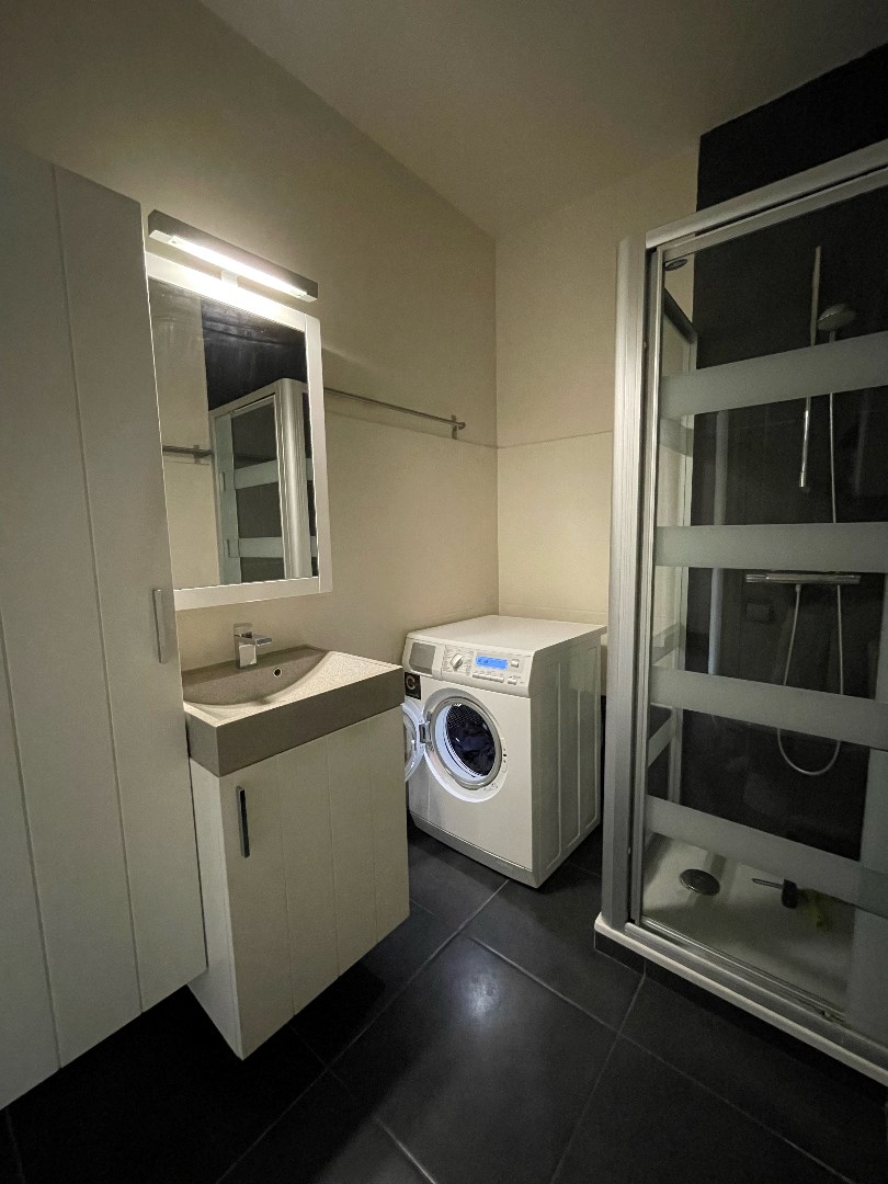 Het appartement omvat inkomhal, lichtrijke leefruimte, ingerichte keuken, berging, badkamer (lavabo met meubel, douche, toilet en aansluiting wasmachine) en 2 volwaardige slaapkamers.