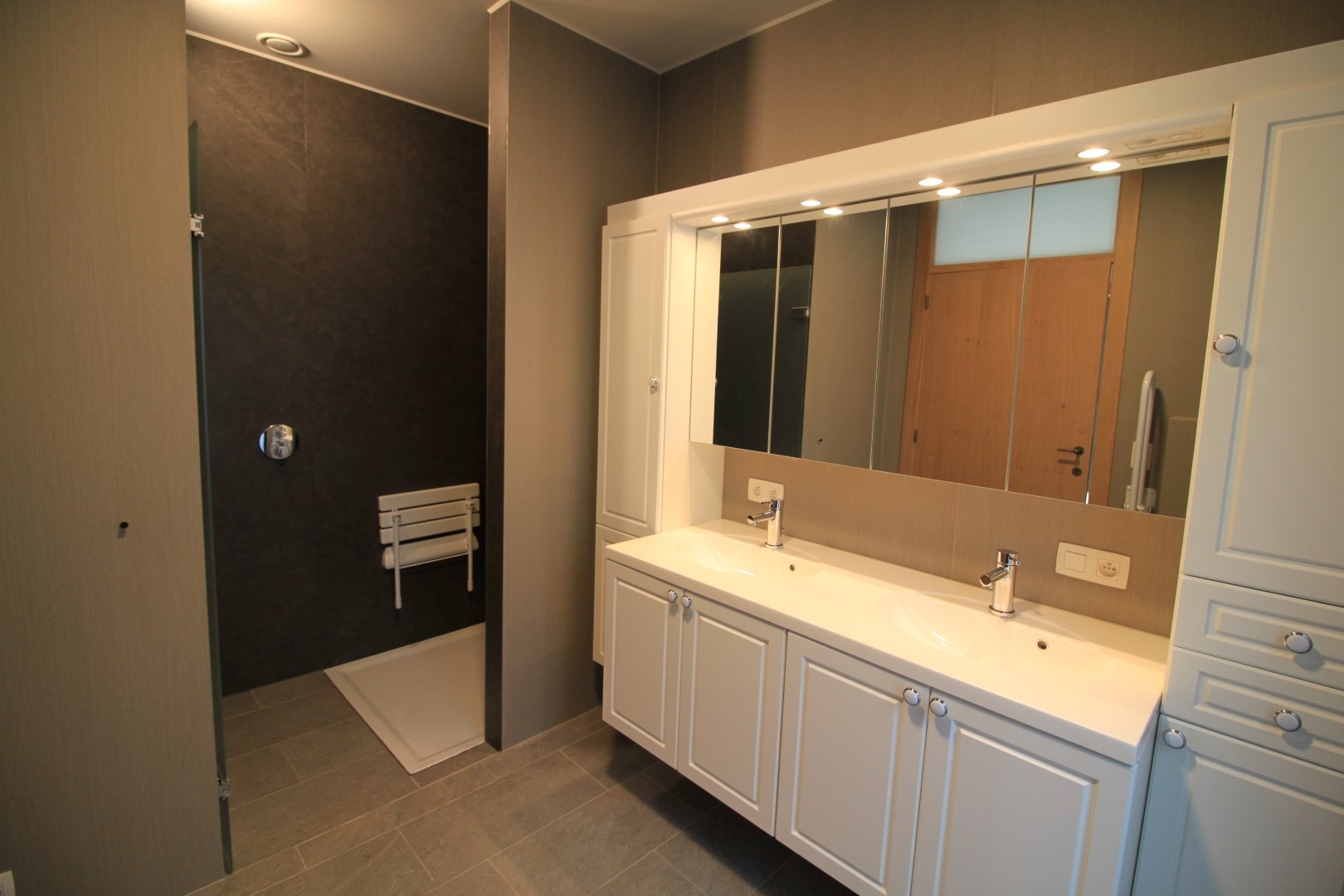Dankzij de grote glaspartijen en de zongerichte oriëntatie, beschikt u in het volledige appartement over veel natuurlijke lichtinval. Deze glaspartijen bieden u op hun beurt toegang tot de ruime terrassen. Op het gelijkvloers hoort een dubbele garage met berging bij het appartement. (E-peil: E58)