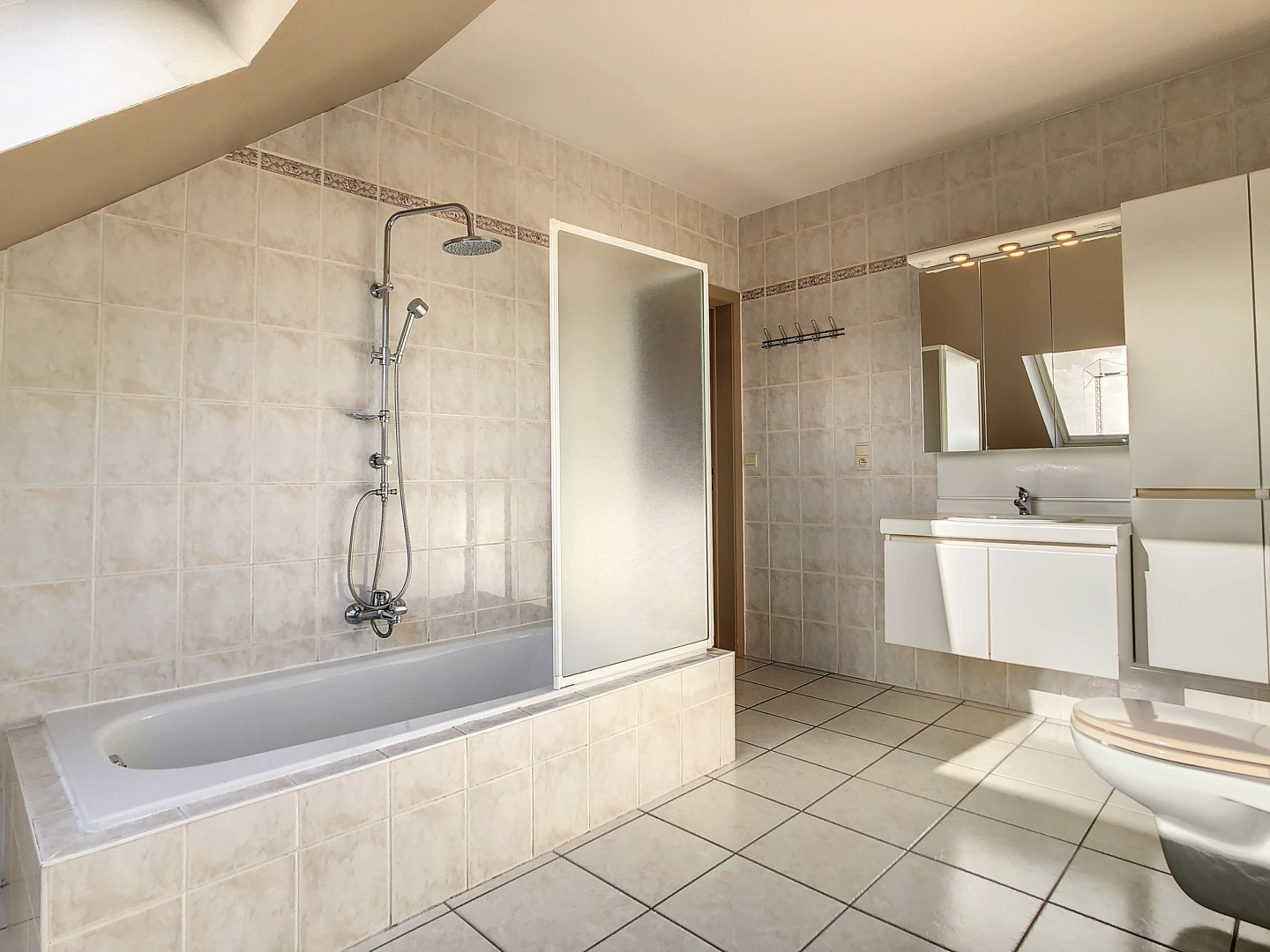 Dit centraal gelegen appartement is zeer ruim en heel goed onderhouden. De bewoonbare oppervlakte is +/- 160m² en omvat een inkom, living met aansluitend terras, open keuken (volledig ingericht), aansluitende berging, 2 slaapkamers, badkamer (met lavabomeubel, ligbad, toilet en aansluiting voor wasmachine en droogkast). Tevens is er een verdiep die perfect kan dienen als 3de slaapkamer of hobbyruimte,… Vrij zicht vanuit living en terras!