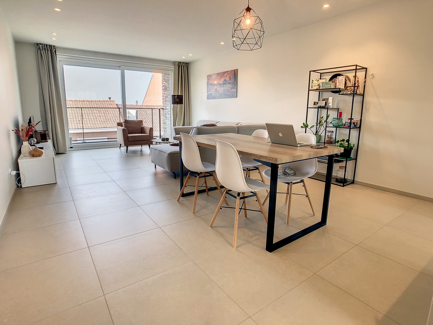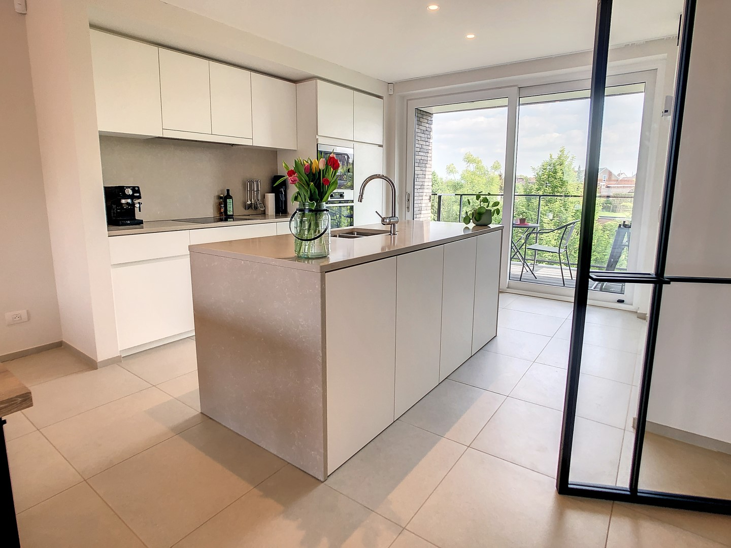 Het appartement bestaat uit inkom, ruime leefruimte die u via het schuifraam toegang biedt tot het terras, open ingerichte keuken (oa. vaatwas,...) met aanpalend een zongericht terras, 2 slaapkamers, badkamer (dubbele lavabo, inloopdouche en toilet), apart toilet, berging met aansluiting wasmachine,...