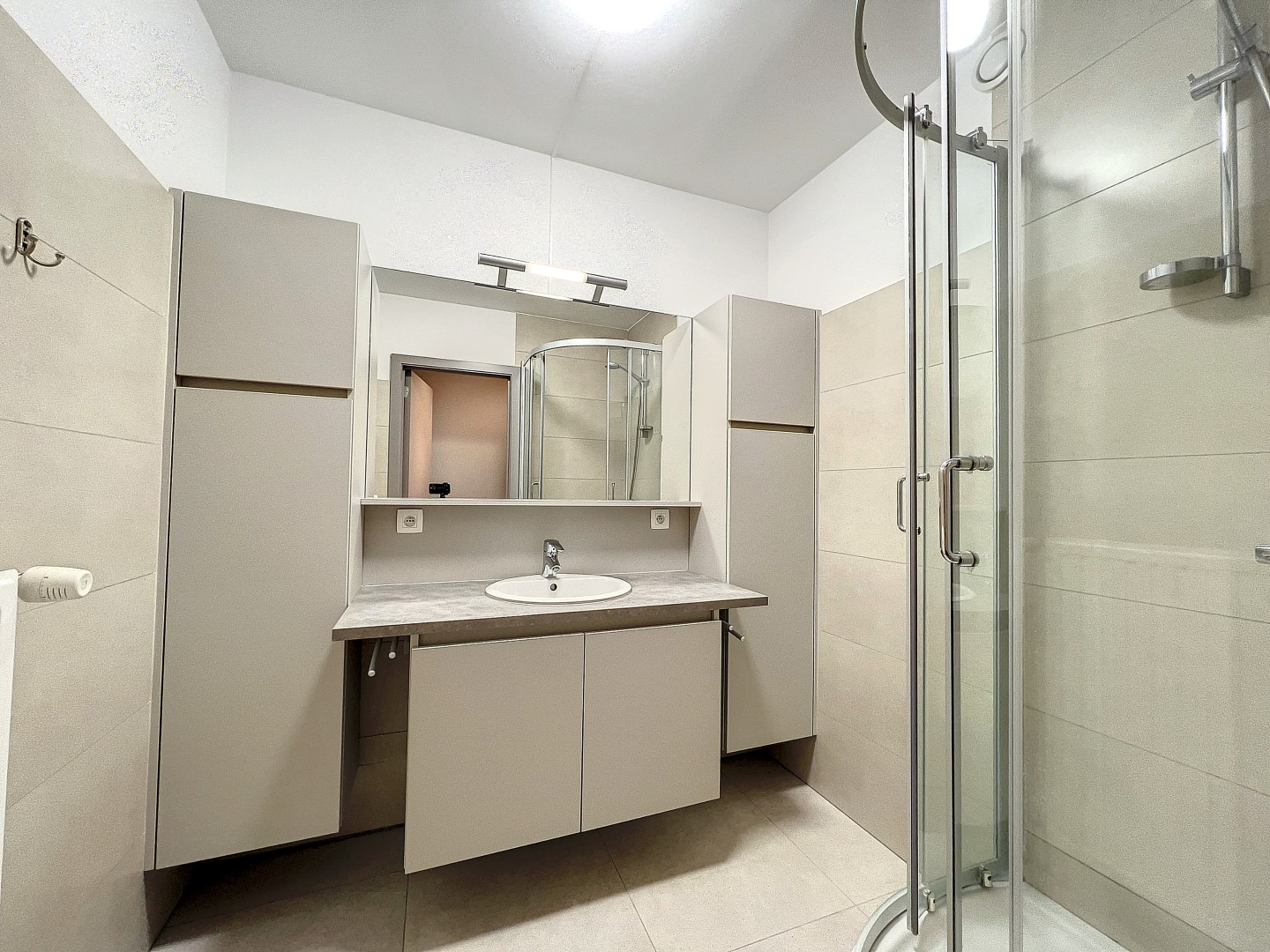 In de kelderruimte bevindt zich een private berging en autostaanplaats die bij het appartement horen.