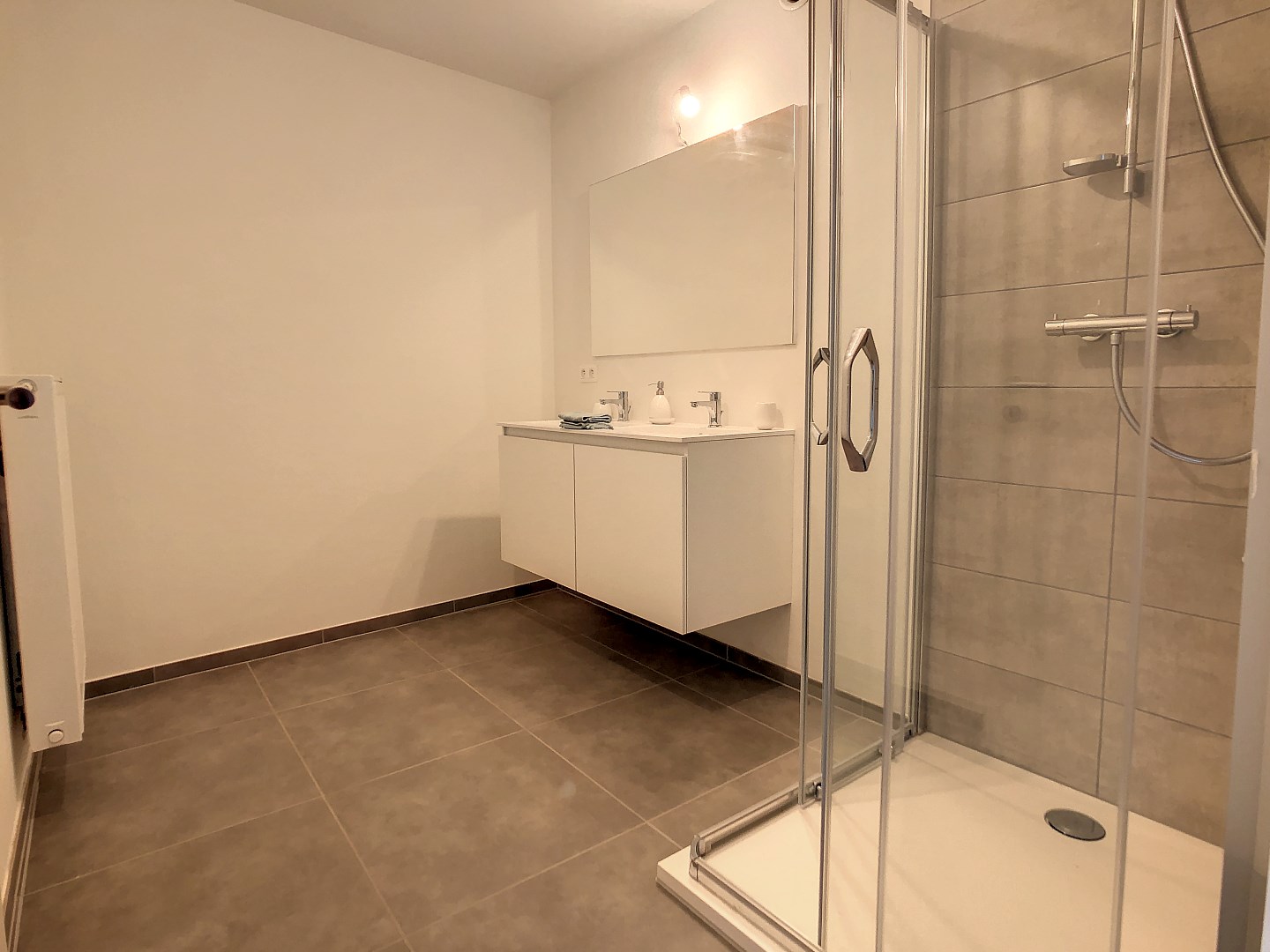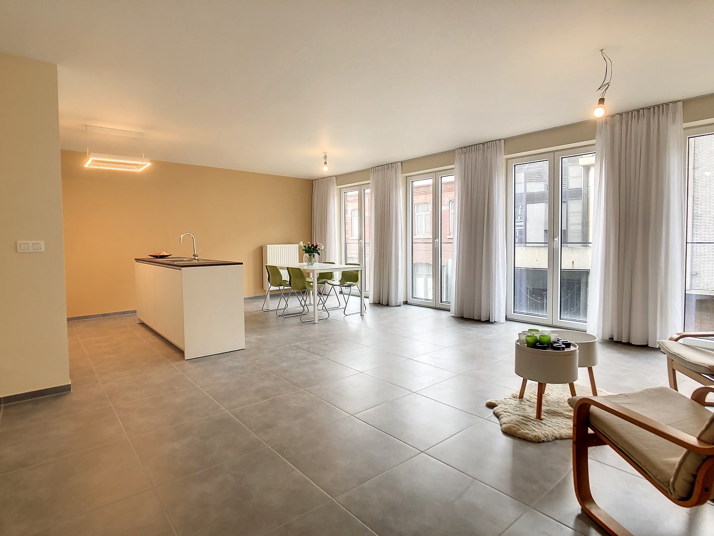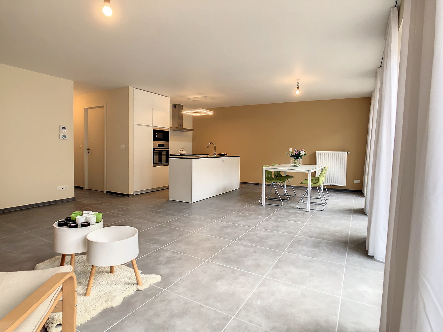 * Het appartement werd volledig geschilderd en voorzien van gordijnen.