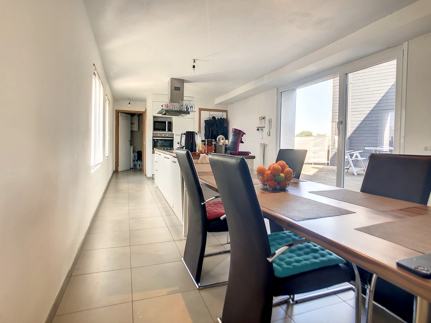Volledig instapklaar appartement op de 1ste verdieping met private inkom, lichtrijke leefruimte met volledig ingerichte open keuken (o.a. vaatwas,...), 2 ruime slaapkamers, badkamer, bergruimte en groot zonneterras. Het appartement is gelegen op wandelafstand van alle winkels en openbaar vervoer. Geen syndic! (EPC uc 7555 - score: 147 kWh/m²)