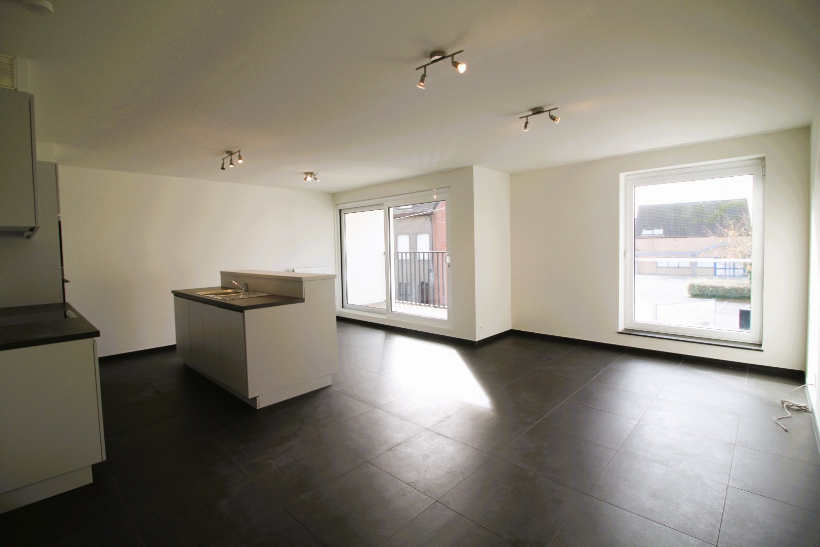 Het appartement bestaat uit een inkom, toilet, lichtrijke leefruimte met open ingerichte keuken, berging, badkamer (dubbele lavabo en douche), 2 slaapkamers én een terras.