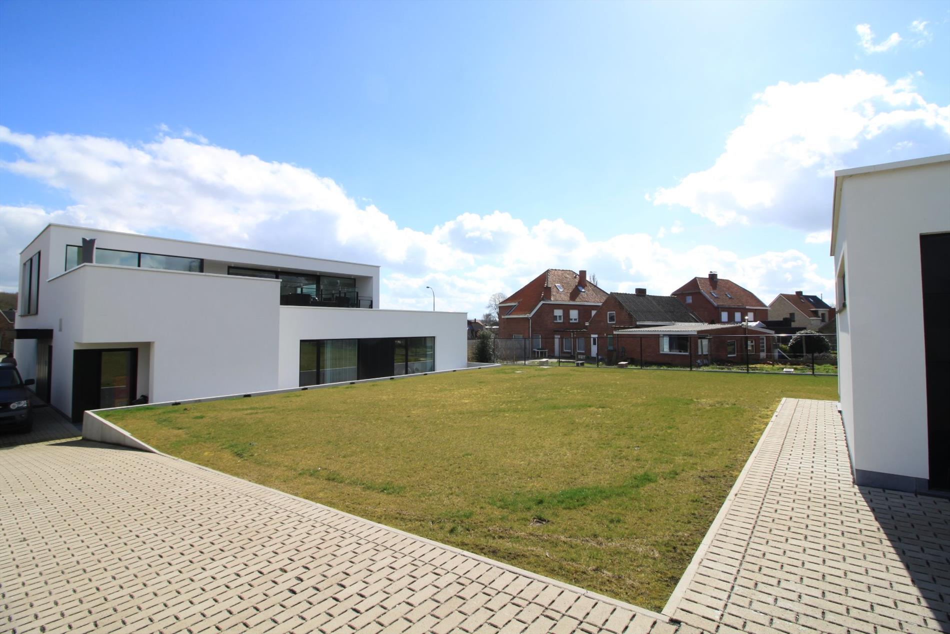 Aan de leefruimte paalt een groot terras die u via trappen toegang biedt tot de tuin en garage.