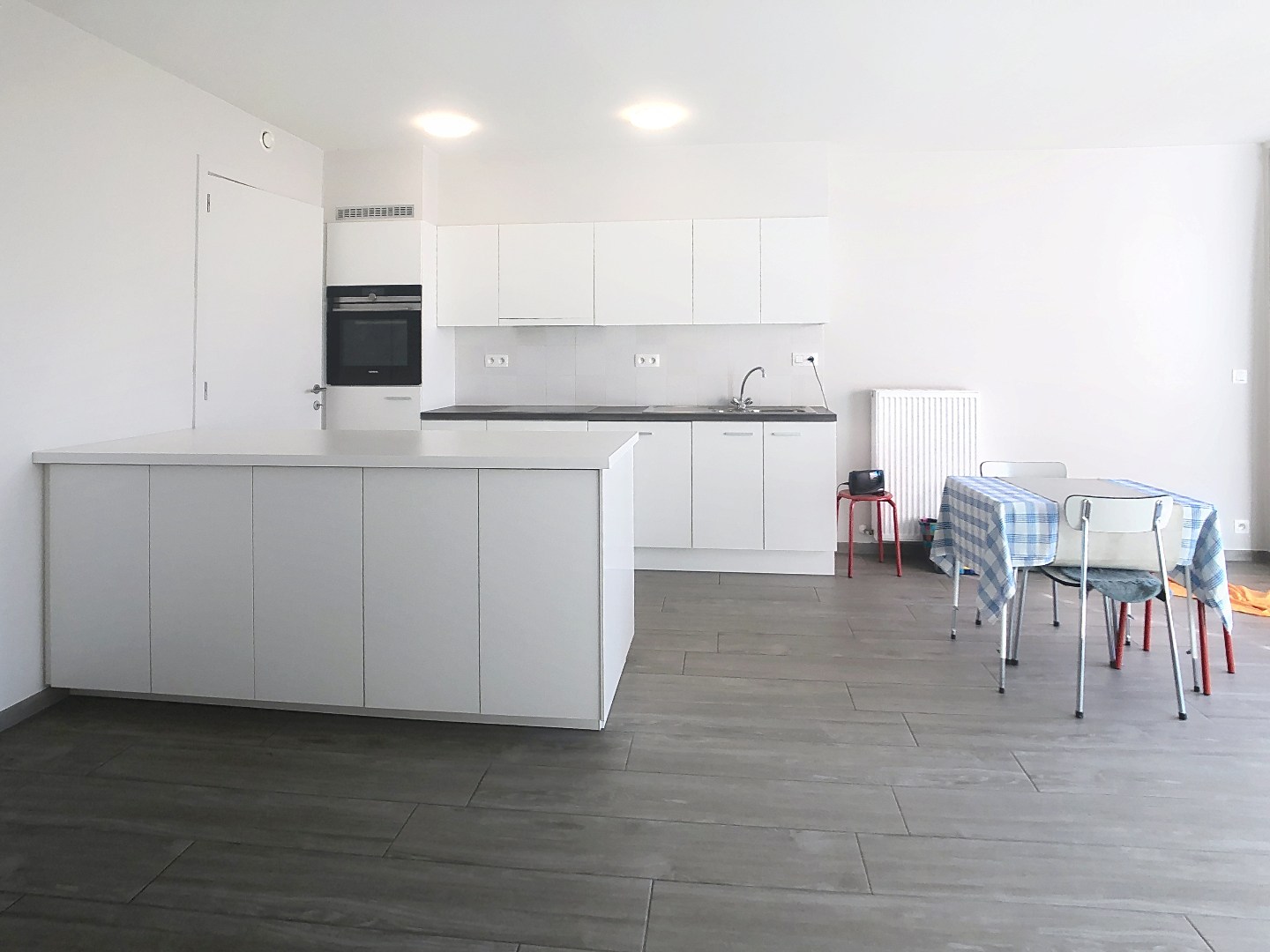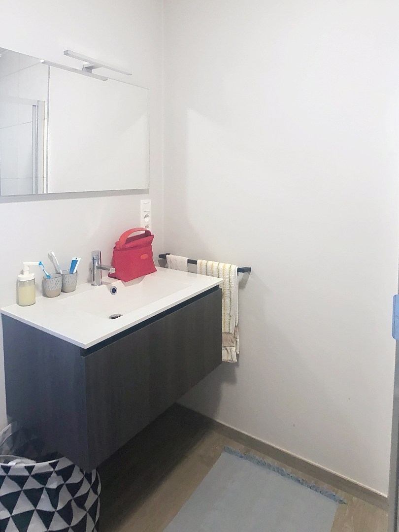 Het appartement zelf bestaat uit lichtrijke leefruimte met open ingerichte keuken (voorzien van frigo, oven, vaatwas, ..) aansluitend aan de keuken is er een praktische bergruimte. Vervolgens is er 1 slaapkamer en een badkamer , voorzien van wasmeubel, douche en toilet.