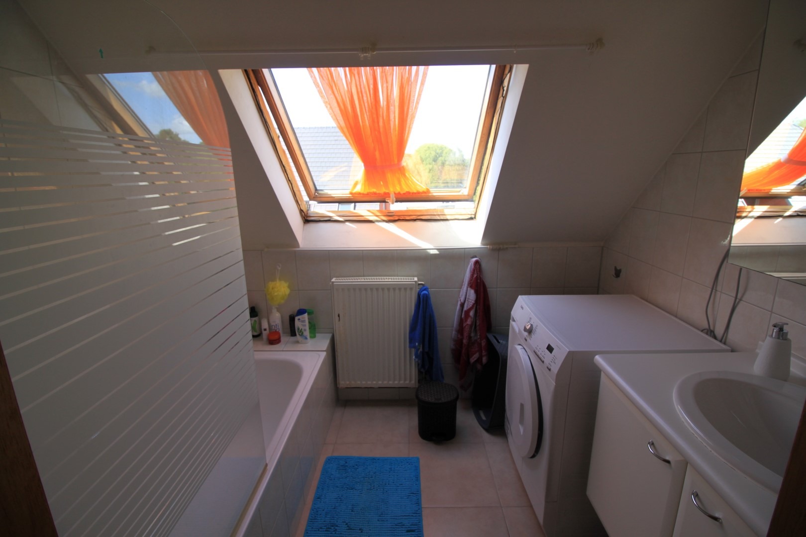 Dit duplex-appartement is gelegen vlakbij marktplein en het bos in Houthulst. Het appartement omvat ruime leefruimte met open ingerichte keuken, toilet, berging, badkamer met bad en douchemogelijkheid, lavabo en 1 ruime slaapkamer. Tevens hoort er bij het appartement een garage!
