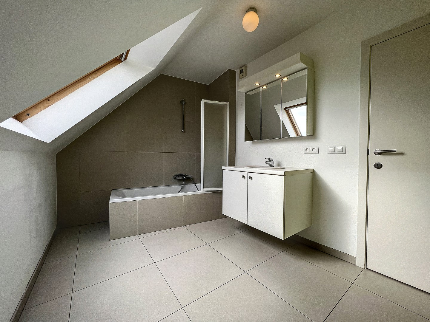Dit duplex-appartement is gelegen in het centrum van Passendale en omvat living, open ingerichte keuken, bergruimte, badkamer met ligbad (met douche-mogelijkheid) en lavabo, toilet, 3 slaapkamers, zolder en terras.