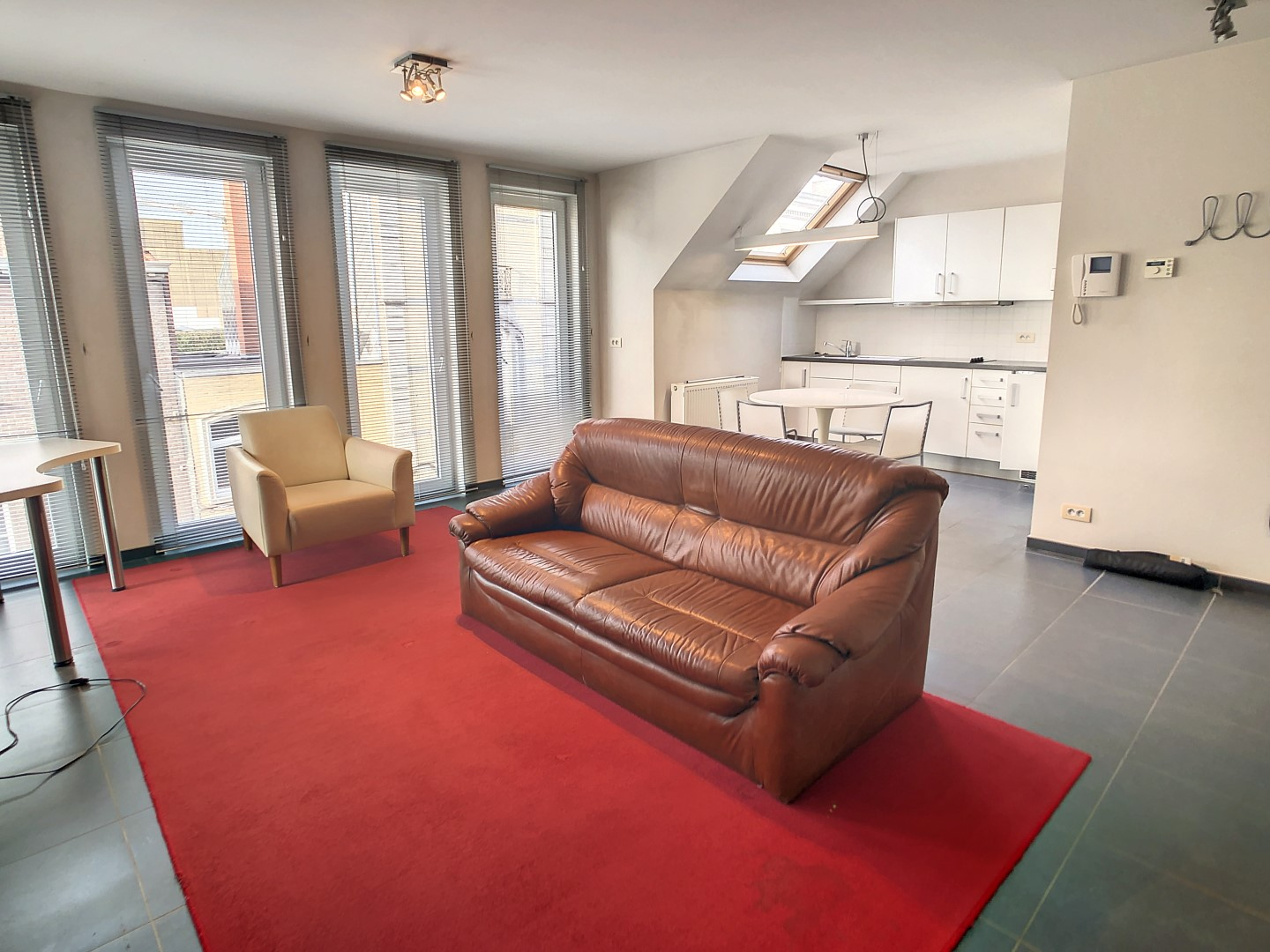 We vinden deze studio terug in het centrum van Roeselare, op wandelafstand van de Grote Markt, openbaar vervoer en diverse handelszaken. Deze lichtrijke studio omvat een leefruimte met slaapvertrek, keuken, berging en badkamer.