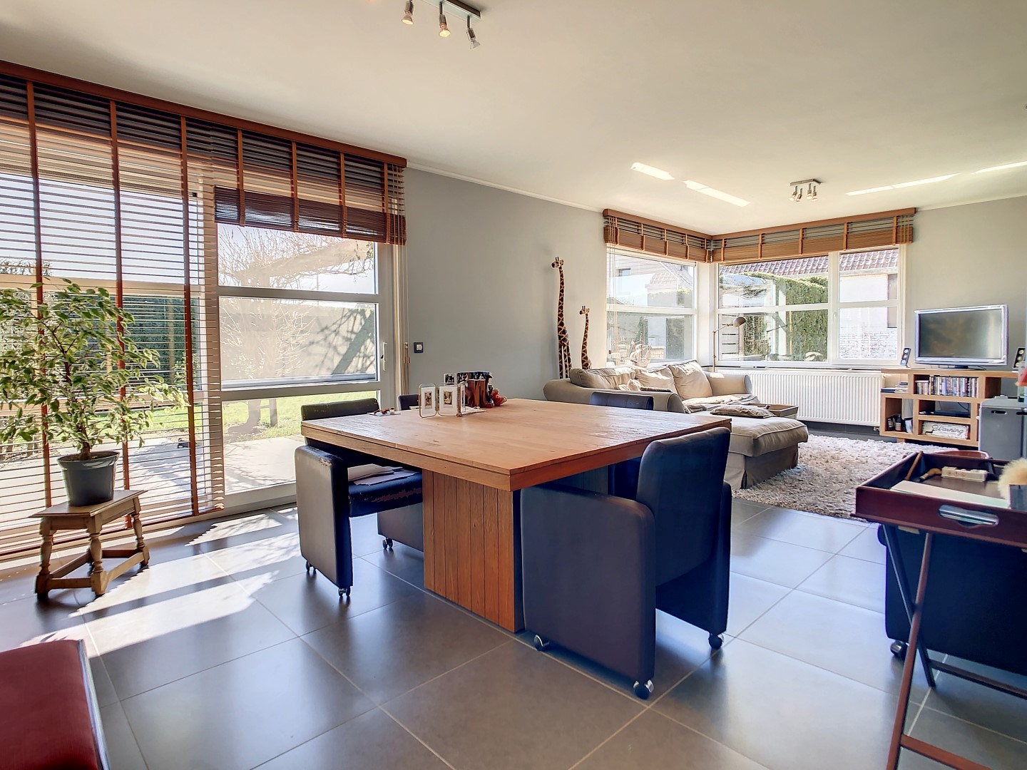 Extra pluspunt: de stores/gordijnen en verlichting blijven aanwezig in de woning.
