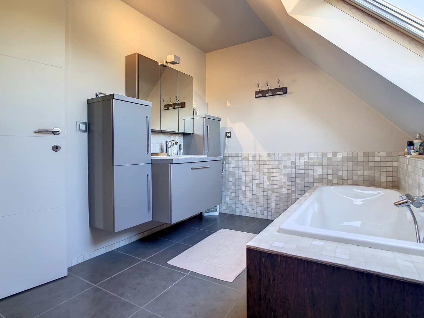 Op het 1ste verdiep bevinden zich 3 volwaardige slaapkamers, toilet en een badkamer voorzien van een lavabo met meubel, inloopdouche en bad, en een geïsoleerde zolder.