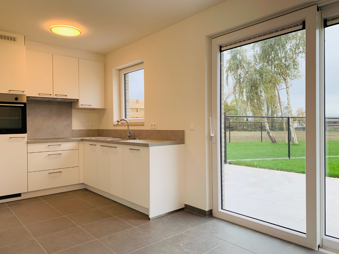 De woning werd volledig geschilderd en wordt voorzien van lichtarmaturen.