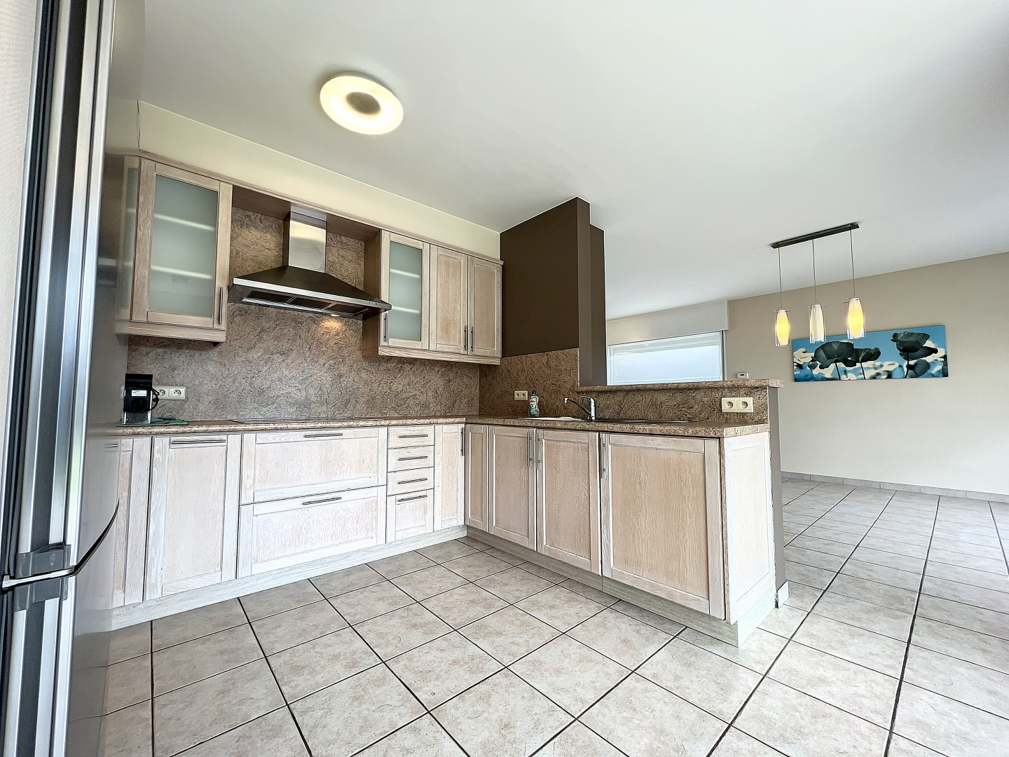 Bij het betreden van de woning komen we in de inkomhal met gastentoilet. Via de inkomhal komen we in de lichtrijke woonkamer met aansluitend de open en ingerichte keuken. Bij de keuken hoort een bergruimte voorzien van de nodige kastruimte.