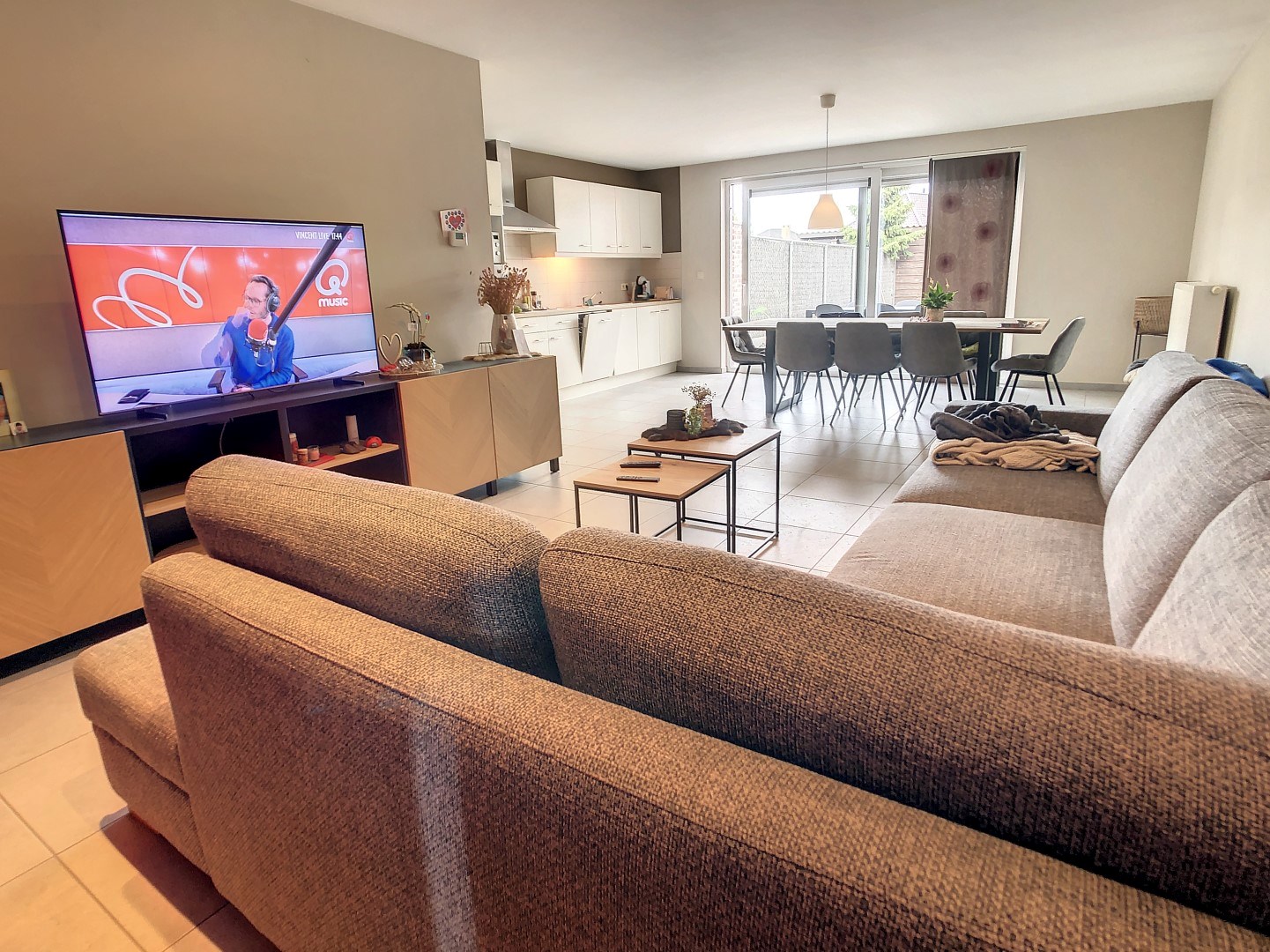 De woning omvat inkomhal met gastentoilet, leefruimte met open ingerichte keuken die u toegang biedt tot de tuin (gras zal nog herzaaid worden)met terras en tuinberging.