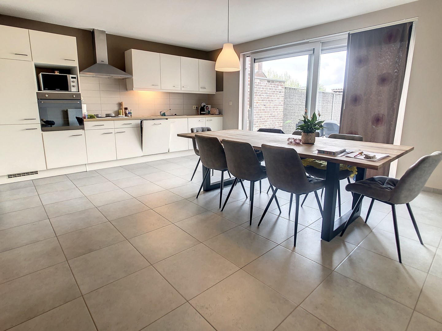 Aansluitend aan de keuken vinden we een bergruimte , met erna de inpandige garage.