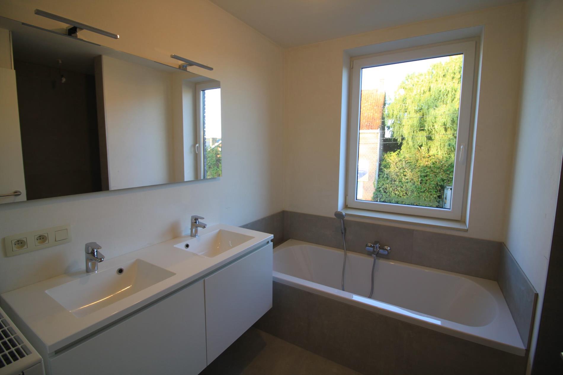 De woning omvat een inkom, gastentoilet, grote zonnige leefruimte met open ingerichte keuken (keramische kookplaten, oven, microgolf, vaatwas,...), bergruimte, 3 2-persoonsslaapkamers, een badkamer (met dubbele lavabo, inloopdouche en ligbad), 2de toilet en een extra bergruimte. Alles werd afgewerkt met kwaliteitsmaterialen en is volledig nieuw!