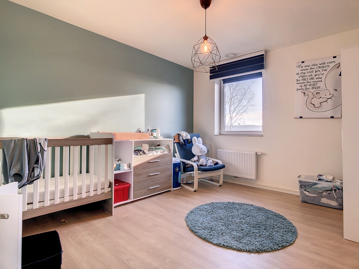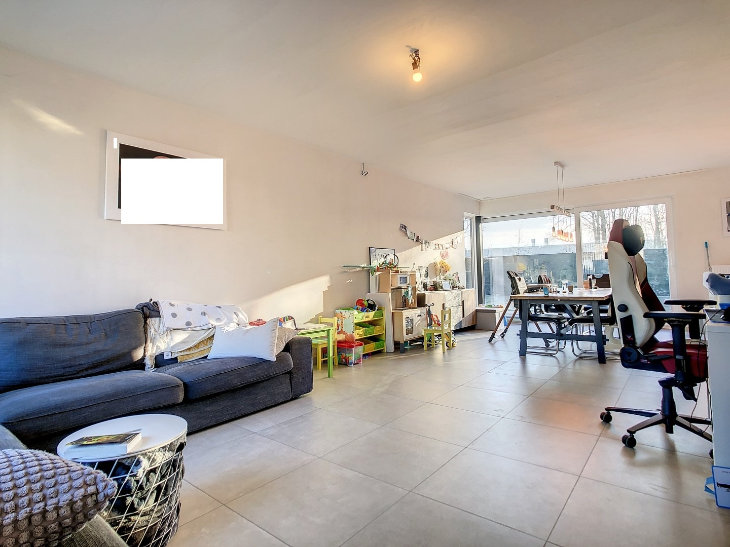 De woning omvat een inkom, gastentoilet, grote zonnige leefruimte met open ingerichte keuken (keramische kookplaten, oven, microgolf, vaatwas,...), bergruimte, 3 2-persoonsslaapkamers, een badkamer (met dubbele lavabo, inloopdouche en ligbad), 2de toilet en een extra bergruimte. Alles werd afgewerkt met kwaliteitsmaterialen!