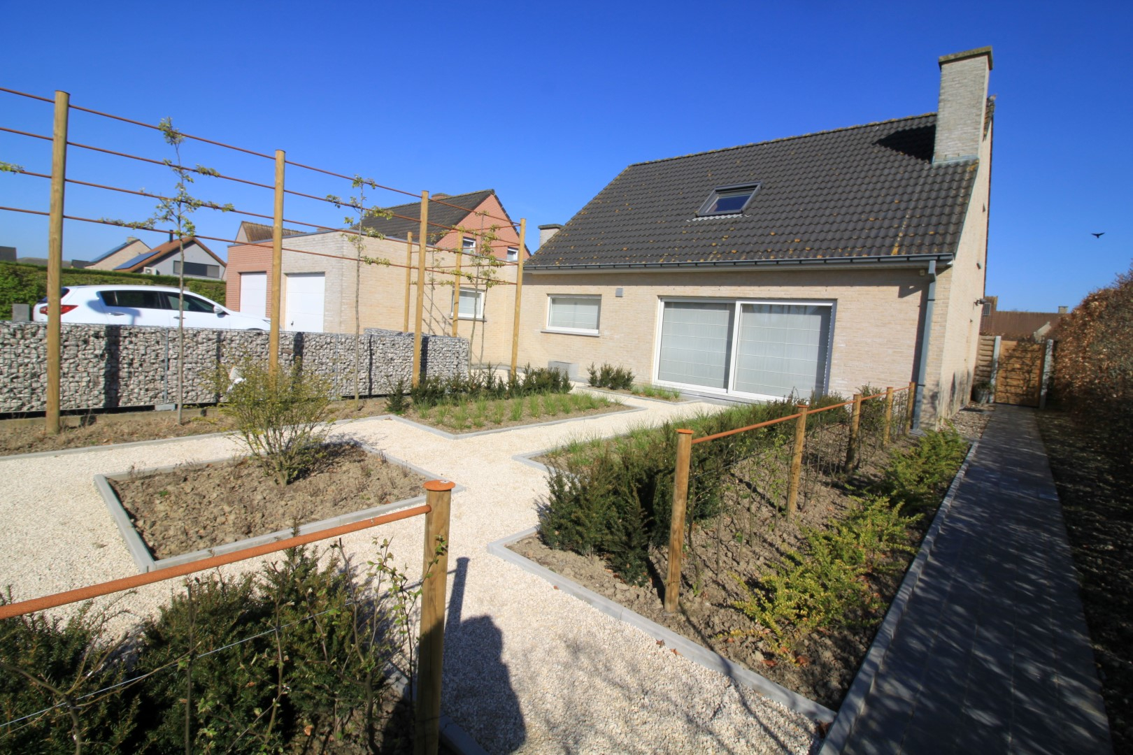 Deze ruime woning is gelegen in een zeer rustige straat maar toch in de directe nabijheid van de dorpskern in Oostnieuwkerke, winkels,... De woning is instapklaar en geniet veel lichtinval dankzij de grote raampartijen! Graag neem ik u mee voor een rondleiding doorheen deze woning. U komt binnen in de inkomhal waarna u toegang hebt tot de leefruimte met een open ingerichte keuken en een extra ruimte voor uw eettafel. Tevens beschikt u op het gelijkvloers over 1 slaapkamer, badkamer (bad met douchemogelijkheid, lavabo en meubel) en een toilet, een garage met opbergmogelijkheden.