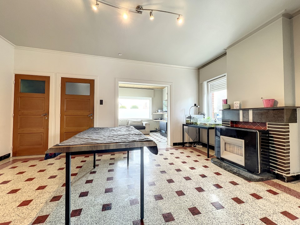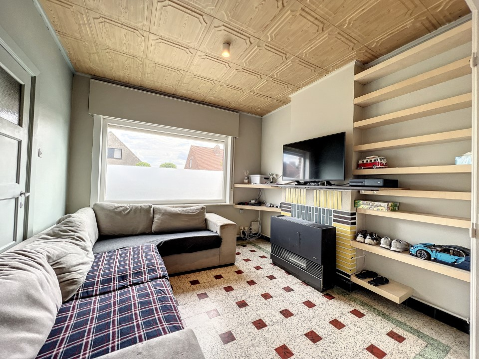 Deze woning nabij het centrum van Oostnieuwkerke omvat een inkom, kelder, ruimte die dienst kan doen als bureau, leefruimte (2 gaskachels) en open keuken met uitzicht op de tuin.