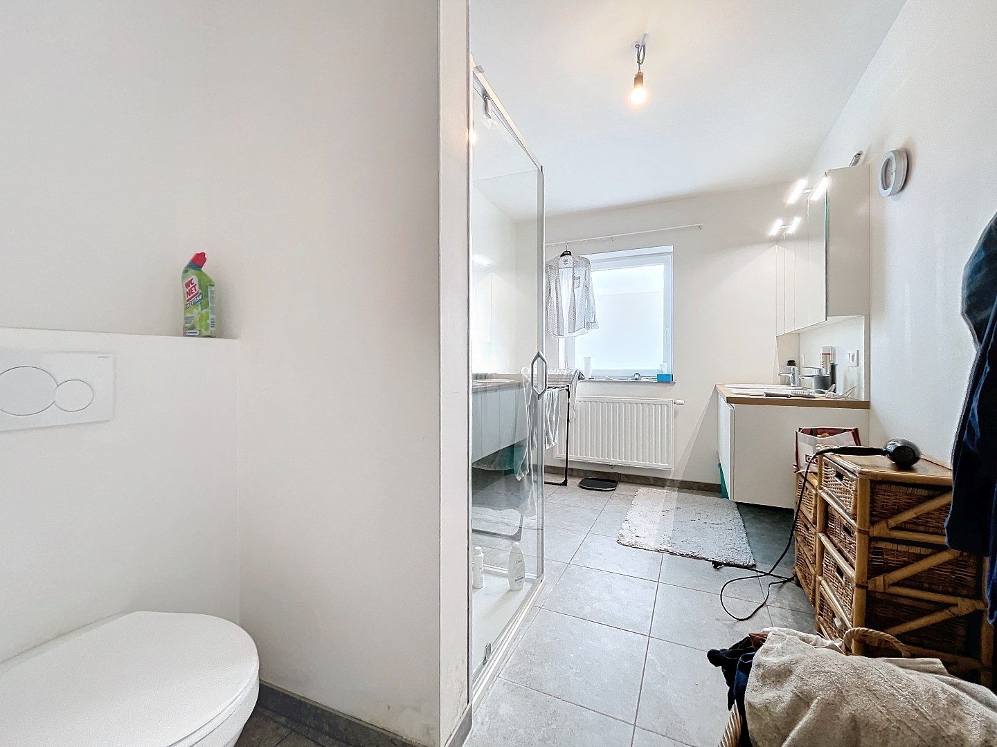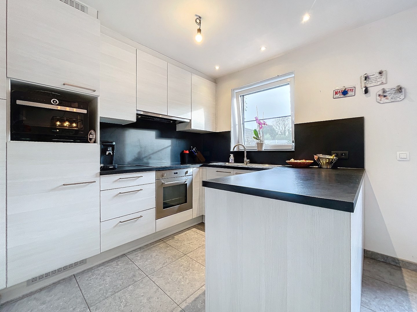 De woonst omvat inkomhal, apart toilet, lichtrijke leefruimte met open ingerichte keuken, grote berging, 2 ruime slaapkamers op het eerste verdiep en badkamer (dubbele lavabo, douche en toilet). Via de vaste trap is de 3de slaapkamer bereikbaar en een extra zolderruimte (geïsoleerd!). Tevens hebt u een mooi terras met tuintje en directe toegang tot uw garage.