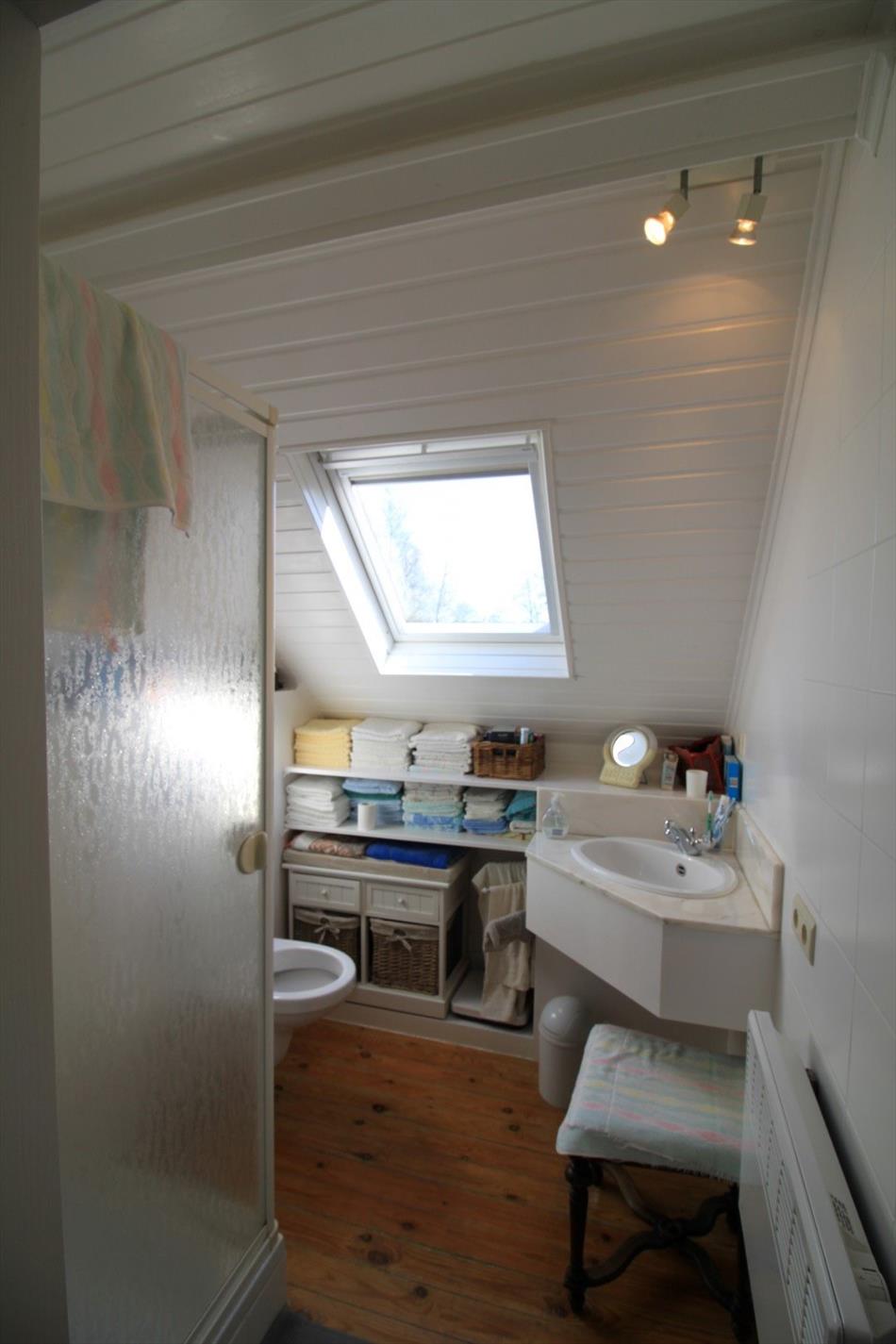 Op het verdiep zijn er 2 ruime slaapkamers, een badkamer (douche, lavabo en toilet) en een ruime geïsoleerde zolder.