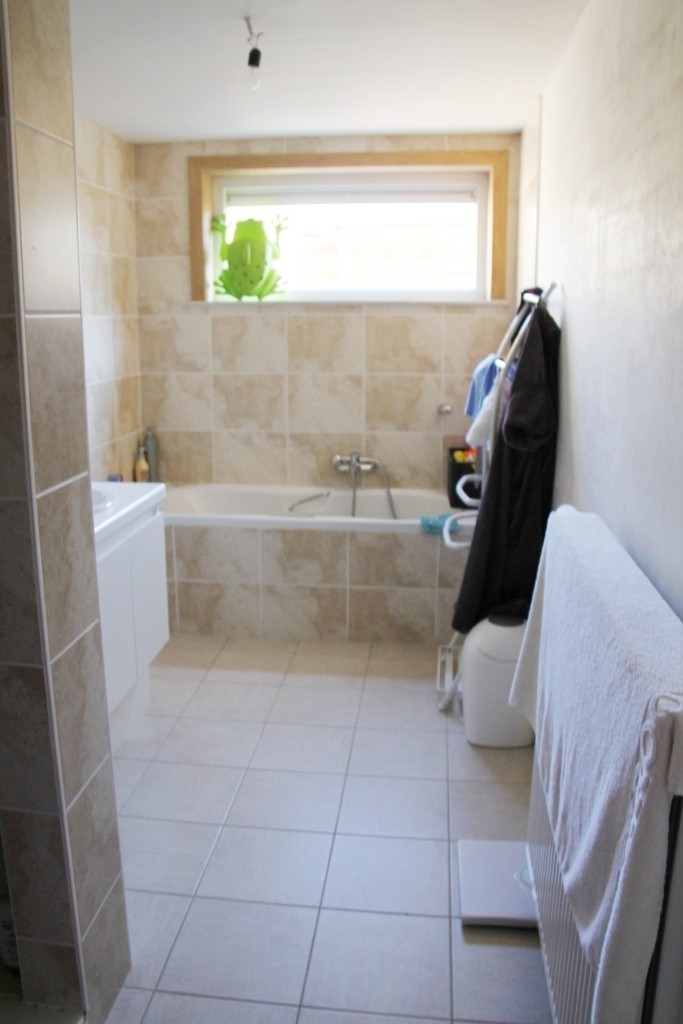 Deze woning werd volledig gerenoveerd en beschikt over een inkom, living met open ingerichte keuken, badkamer (lavabomeubel, douche en ligbad), 3 slaapkamers, bureau en hobby-ruimte. Achter de woning bevindt zich een mooi terras, volledig omheind. Verrassend ruime woning vlakbij AD Delhaize én op wandelafstand van het centrum van Roeselare.