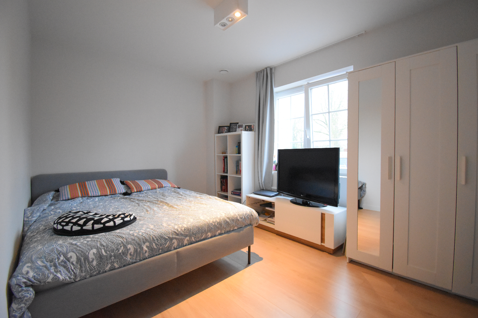 De woning omvat op het gelijkvloers over een inkomhal met gastentoilet, lichtrijke woonkamer met open keuken. De keuken is voorzien van alle nodige toestellen en beschikt over een aansluitende berging waar er de mogelijkheid is om wasmachine te plaatsen. Het gelijkvloers beschikt verder over een eerste, zeer ruime slaapkamer met eigen douchekamer. Op het verdiep bevinden zich nog 2 ruime slaapkamers en badkamer met toilet, bad met douchemogelijkheid en dubbele lavabo.