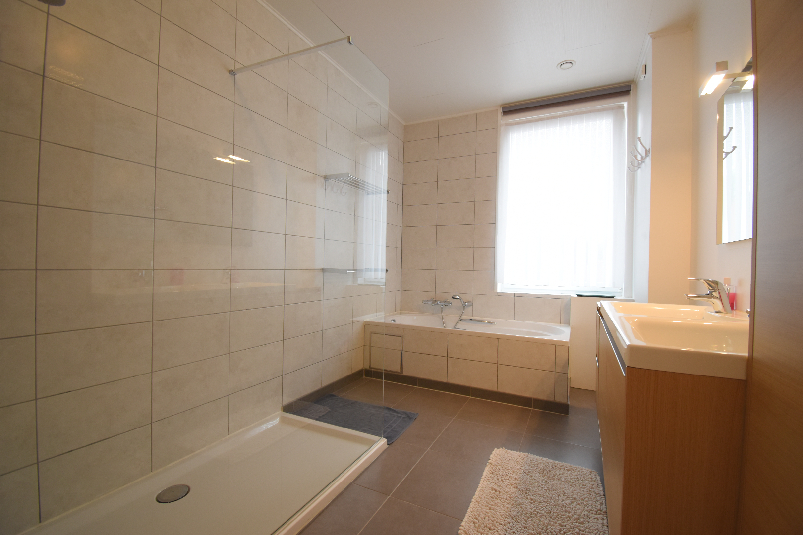 Op het eerste verdiep bevinden zich 2 ruime slaapkamers en een badkamer (dubbele lavabo, bad, douche en toilet). De zolder is volledig geïsoleerd. Tevens hoort er bij de woning een parkeerplaats. (EPC uc 4169 - score; 543 kWh/m² > deze score dateert van VOOR de verbouwingen: ondertussen werd een hoogrendementsketel, dakisolatie R-waarde >= 2,50m²K/W, dubbel glas,... geplaatst)