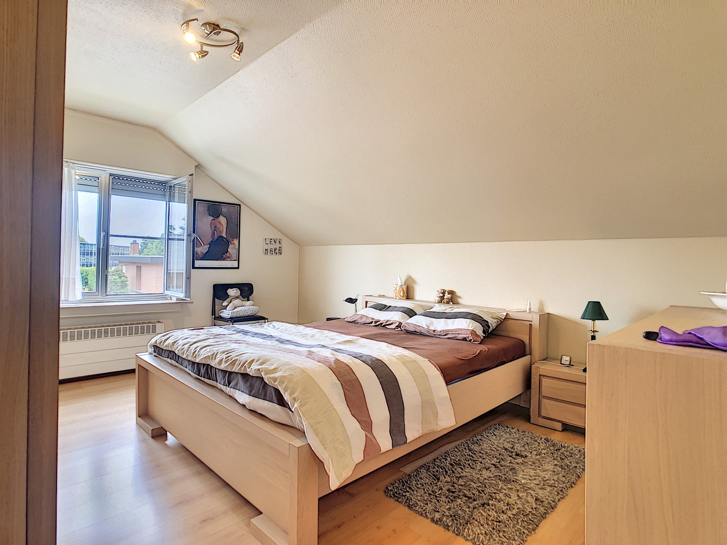Deze verzorgde woning is gelegen in een kindvriendelijke buurt, in de nabijheid van winkels, openbaar vervoer en het centrum van Staden. De woning omvat inkomhal, lichtrijke leefruimte, ingerichte keuken met aansluitend een berging, bureau, toilet, badkamer (douche en lavabo met meubel) en garage. Op het verdiep bevinden zich 3 ruime slaapkamers en een toilet + zolderruimte. In de tuin kan u genieten op het terras met vijver. Het gras zal nog opnieuw ingezaaid worden!