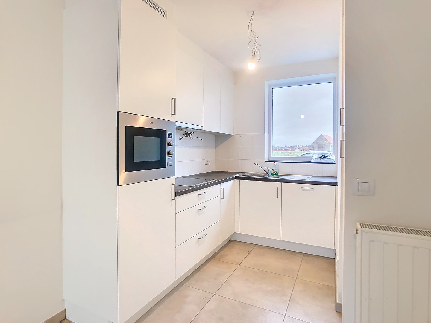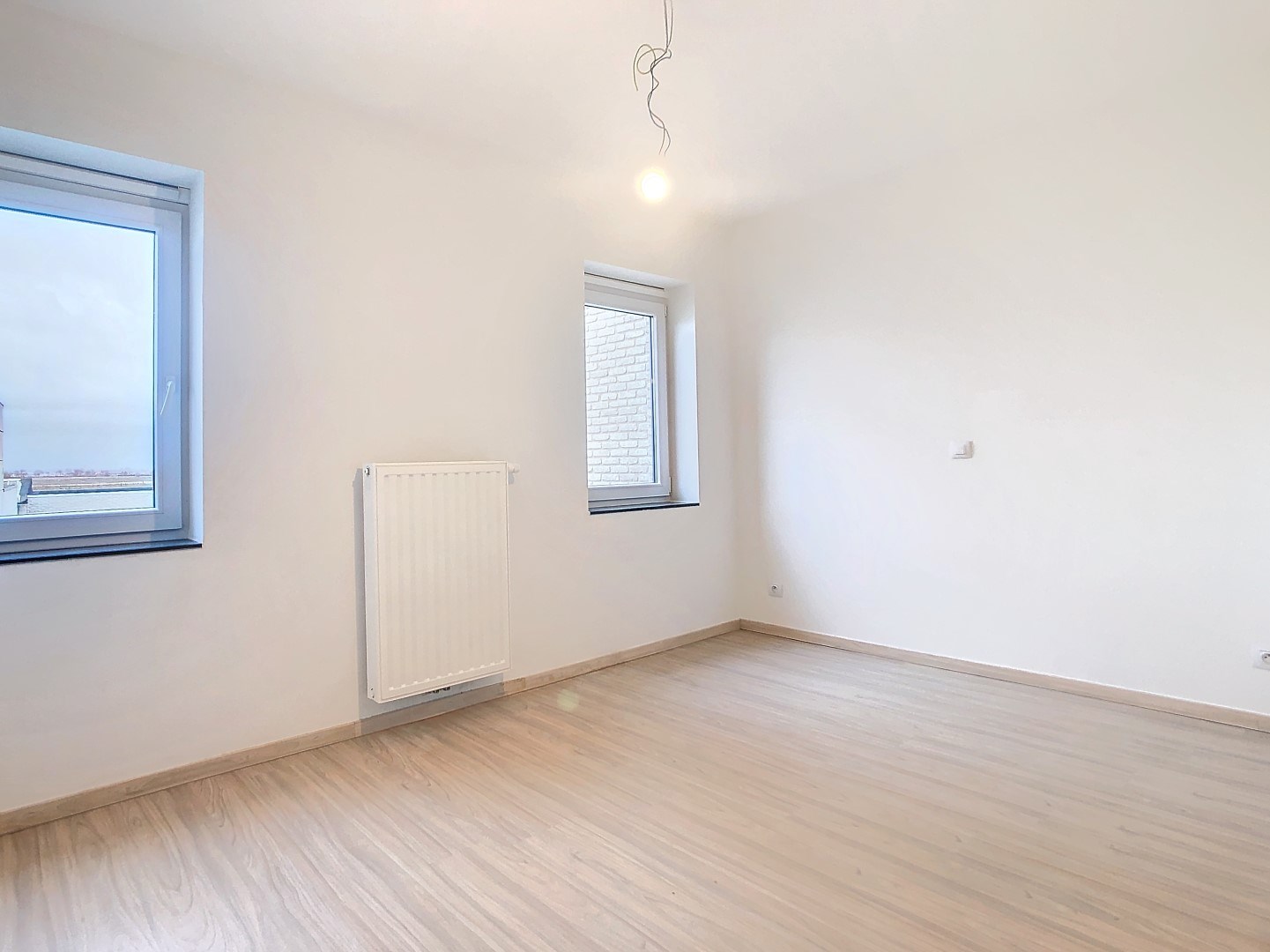 Deze woning omvat een inkom, leefruimte met open keuken (toestellen AEG), toilet, 3 slaapkamers, badkamer (ligbad, dubbel lavabomeubel en inloopdouche), 2de toilet en 2 bergruimtes. Vanuit de leefruimte bereikt u via het schuifraam, het terras en de zuidgerichte tuin. Achteraan het perceel bevindt zich nog een gemeenschappelijke tuin.