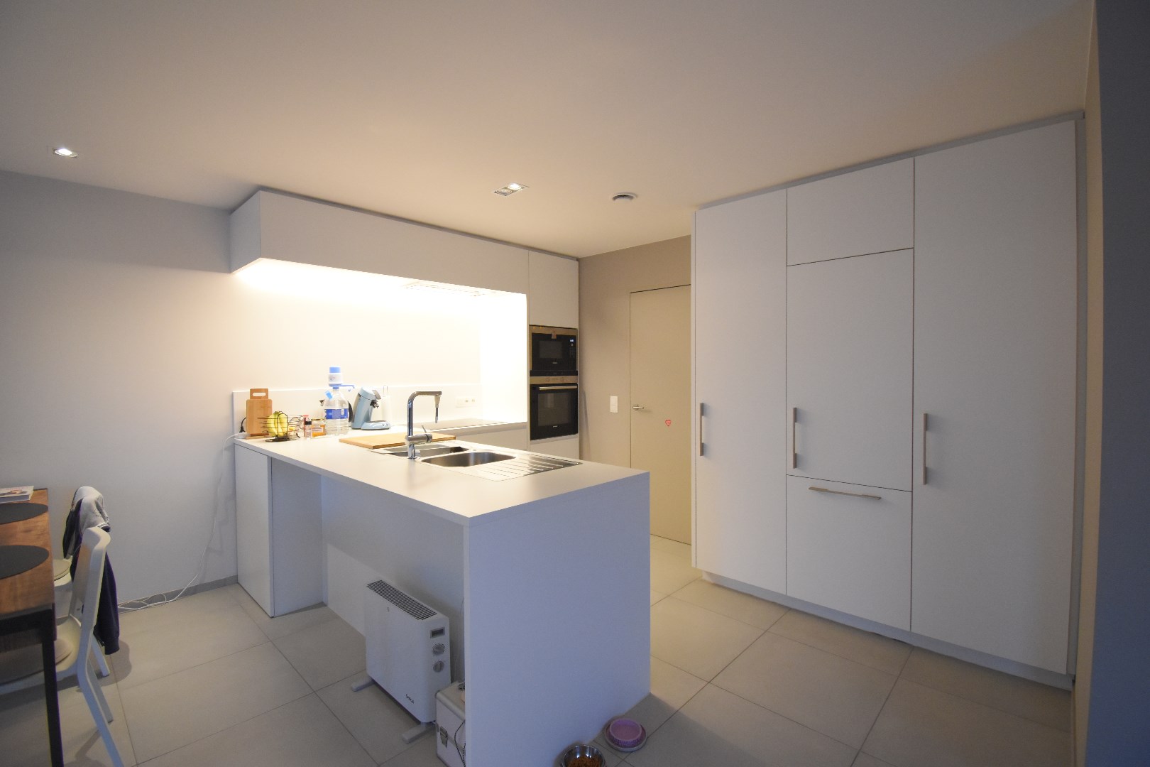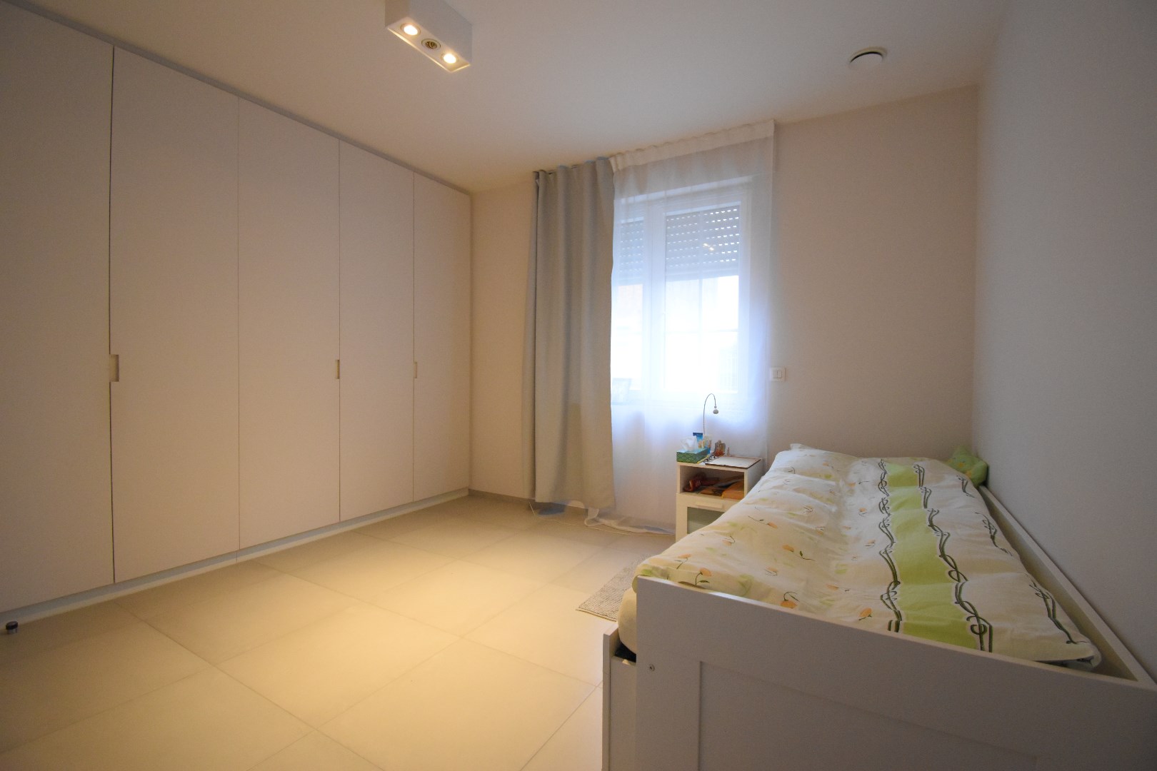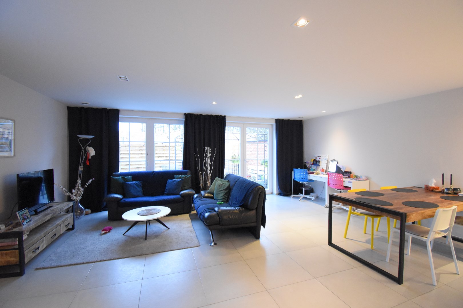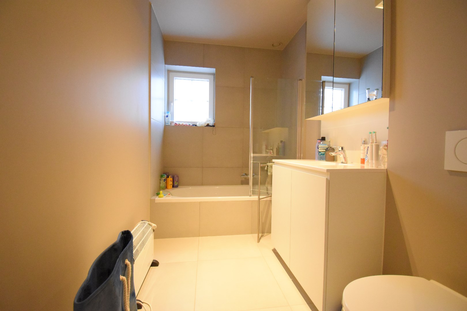 De woning omvat op het gelijkvloers over een inkomhal met gastentoilet, lichtrijke woonkamer met open keuken. De keuken is voorzien van alle nodige toestellen en beschikt over een aansluitende berging waar er de mogelijkheid is om wasmachine te plaatsen. Het gelijkvloers beschikt verder over een eerste, zeer ruime slaapkamer met eigen douchekamer. Op het verdiep bevinden zich nog 2 ruime slaapkamers en badkamer met toilet, bad met douchemogelijkheid en dubbele lavabo.
