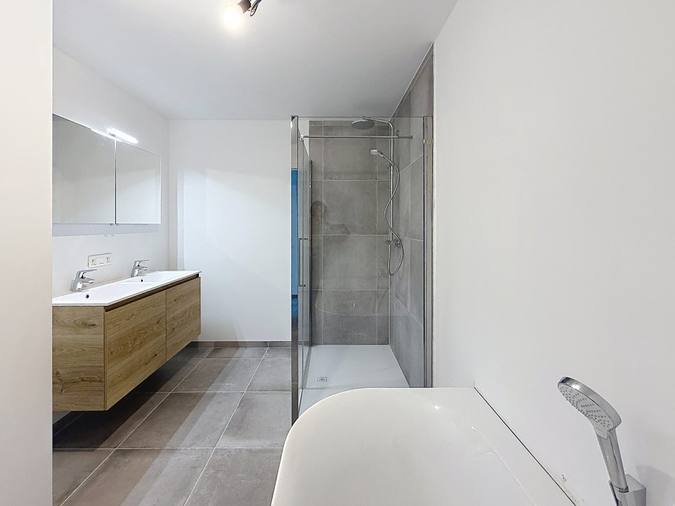 * badkamer met lavabomeubel, inloopdouche én ligbad