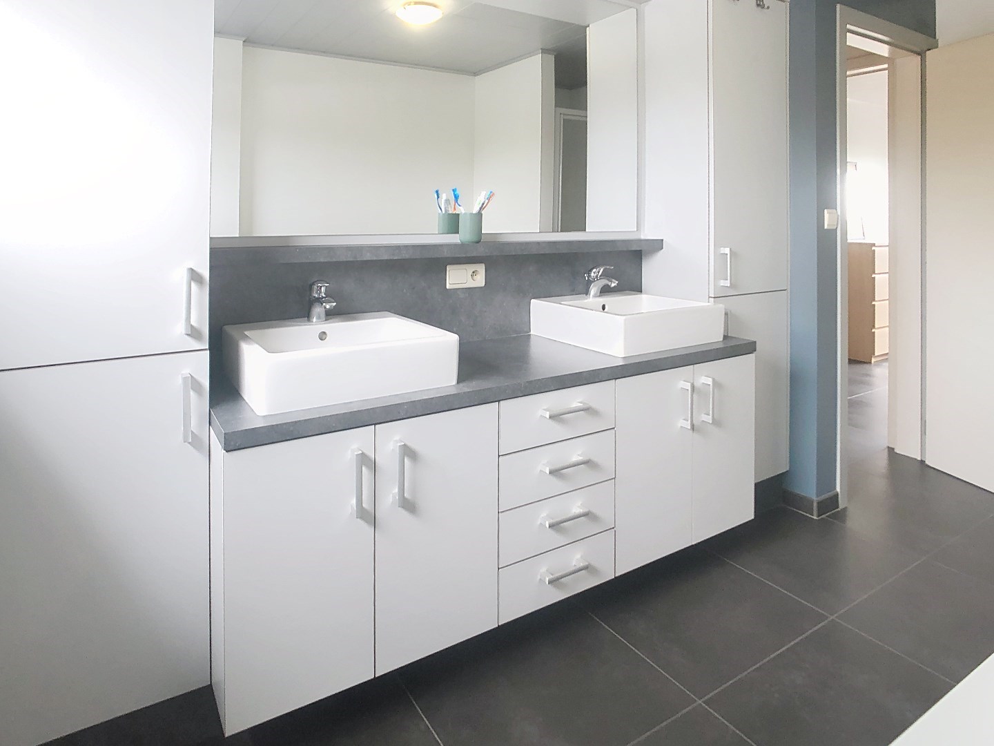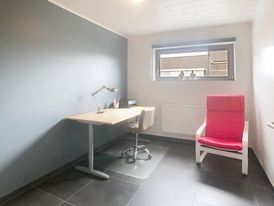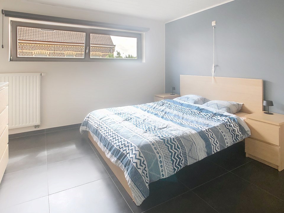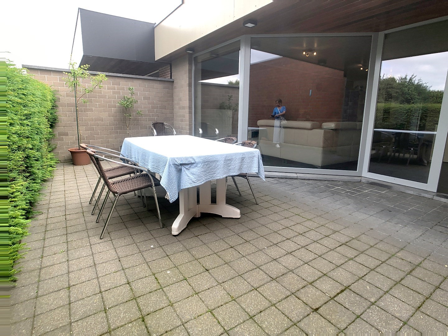 De woning bestaat uit inkom met toilet, living met open ingerichte keuken, 3 slaapkamers, badkamer (met dubbele lavabo, bad en douche), garage, terras en tuin. De woning is beschikbaar vanaf 15/07/2025.