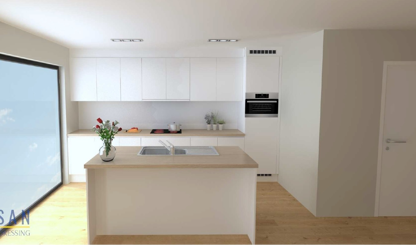 Het appartement omvat een inkom met toilet, grote leefruimte, open ingerichte keuken, 2 ruime slaapkamers, bergruimte en badkamer. Tevens beschikt u over een zuidgericht terras aansluitend aan uw leefruimte!