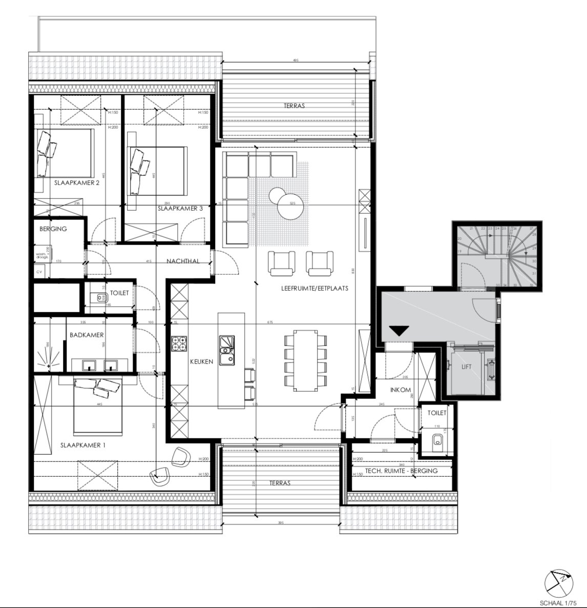 2e verdieping, doorzon, 2 terrassen: voorkant 8,69m² + achterkant 10,89m² ( 19,58m² )