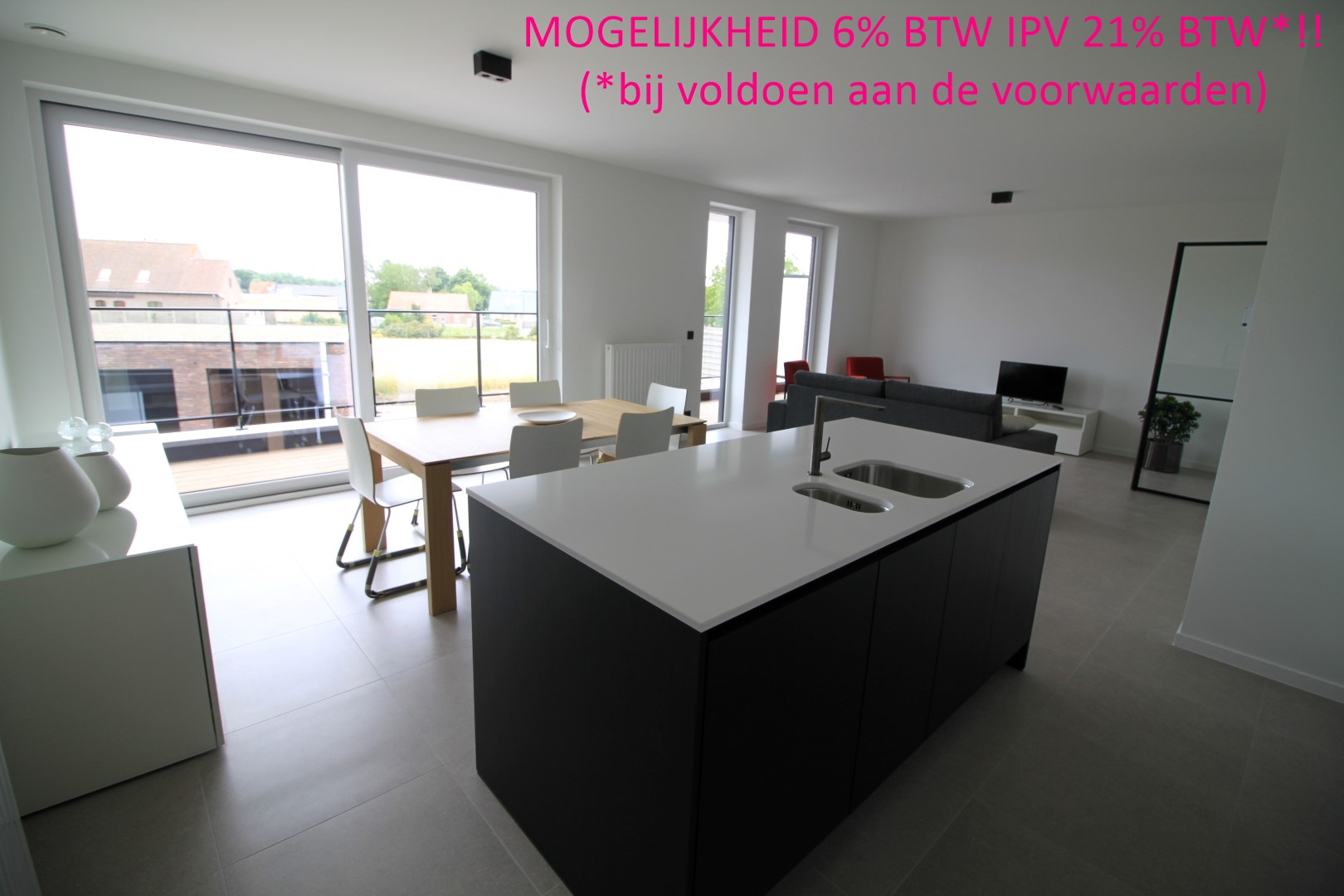 KIJKAPPARTEMENT! Aan de achterzijde van residentie Belle-Vue bevindt zich dit prachtig 2-slaapkamer appartement! Het appartement omvat een inkom, toilet, grote leefruimte met veel lichtinval, open ingerichte keuken, bergruimte, badkamer en 2 2-persoonsslaapkamers. Via de leefruimte komt u op het grote terras van maar liefst 24m²! Dit terras biedt u een prachtig verzicht!