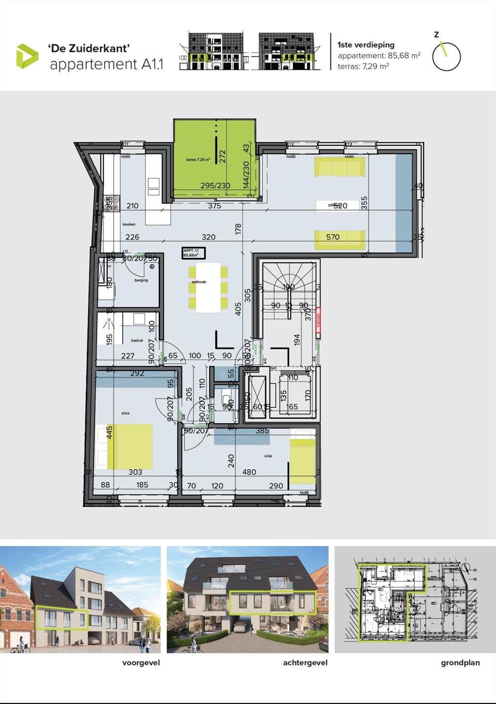 Het appartement omvat een zonnige leefruimte met open ingerichte keuken. Zowel de keuken als de leefruimte geven uit op het zuidgericht terras! U beschikt tevens over een badkamer, 2 slaapkamers en een bergruimte.