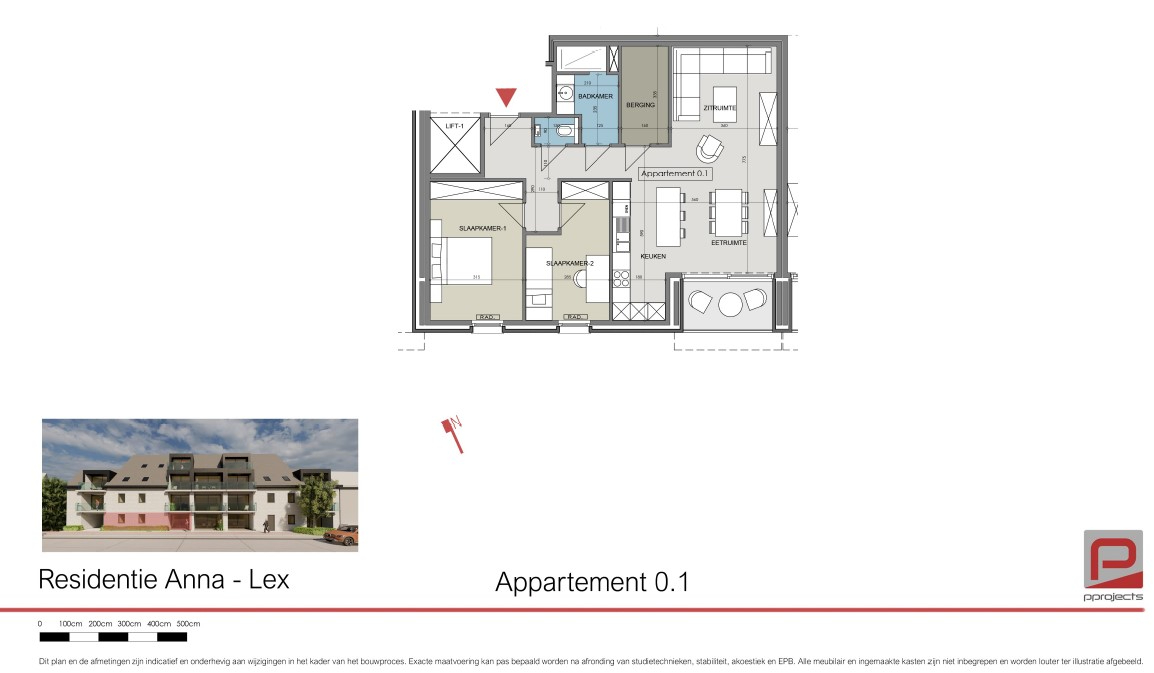 Op het gelijkvloers van nieuwbouwresidentie Anna-Lex vindt u dit 2-slaapkamer appartement met terras terug.