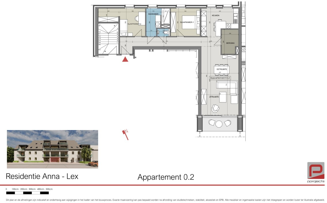 Dit 2-slaapkamer appartement bevindt zich op de gelijkvloerse verdieping van nieuwbouwresidentie Anna-Lex.