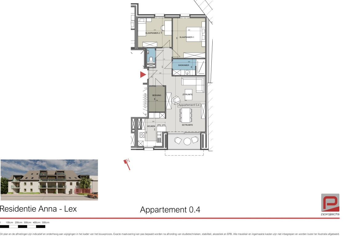 Op het gelijkvloers van nieuwbouwresidentie Anna-Lex vindt u dit 2-slaapkamer appartement met terras terug.