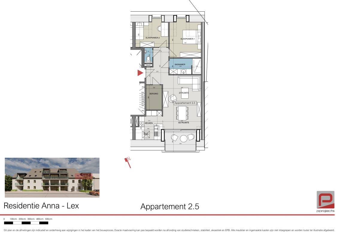 Dit nieuwbouwappartement in Residentie Anna-Lex biedt u een leefruimte met toegang tot het zuidgericht terras, een open ingerichte keuken, bergruimte, toilet, badkamer en 2 slaapkamers.