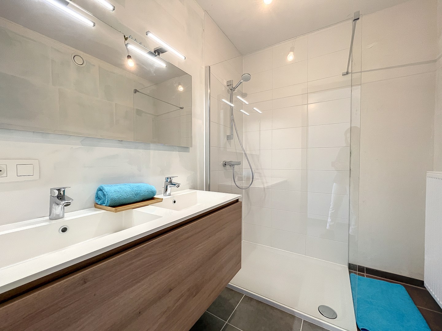 Op de 2de verdieping van deze residentie vindt u dit appartement terug bestaande uit inkom met gastentoilet, leefruimte met toegang tot het terras, open keuken (ingericht met toestellen), 2 slaapkamers, bergruimte en badkamer met lavabomeubel en inloopdouche. U heeft de mogelijkheid tot aankoop van een overdekte parkeerplaats of garage. (EPB in opmaak)