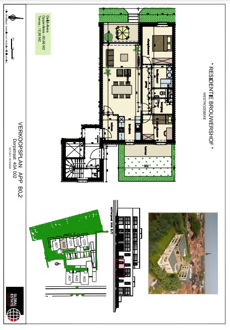 Dit gelijkvloers appartement is heel rustig gelegen en omvat een inkom, leefruimte met toegang tot het 1ste terras, open keuken (ingericht met toestellen) met toegang tot het 2de terras met tuintje, bergruimte, toilet en badkamer met lavabomeubel en inloopdouche. U heeft de mogelijkheid tot aankoop van een overdekte staanplaats of garage. (EPB in opmaak)