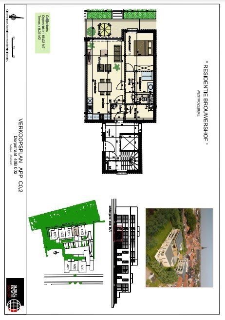 Dit gelijkvloers appartement omvat een inkom, leefruimte met open ingerichte keuken met toegang tot het ruim terras via het schuifraam, slaapkamer tevens met toegang tot het terras, badkamer met inloopdouche en lavabomeubel, toilet en bergruimte. Bij de aankoop van een appartement, dient tevens een parkeerplaats of garage aangekocht te worden.