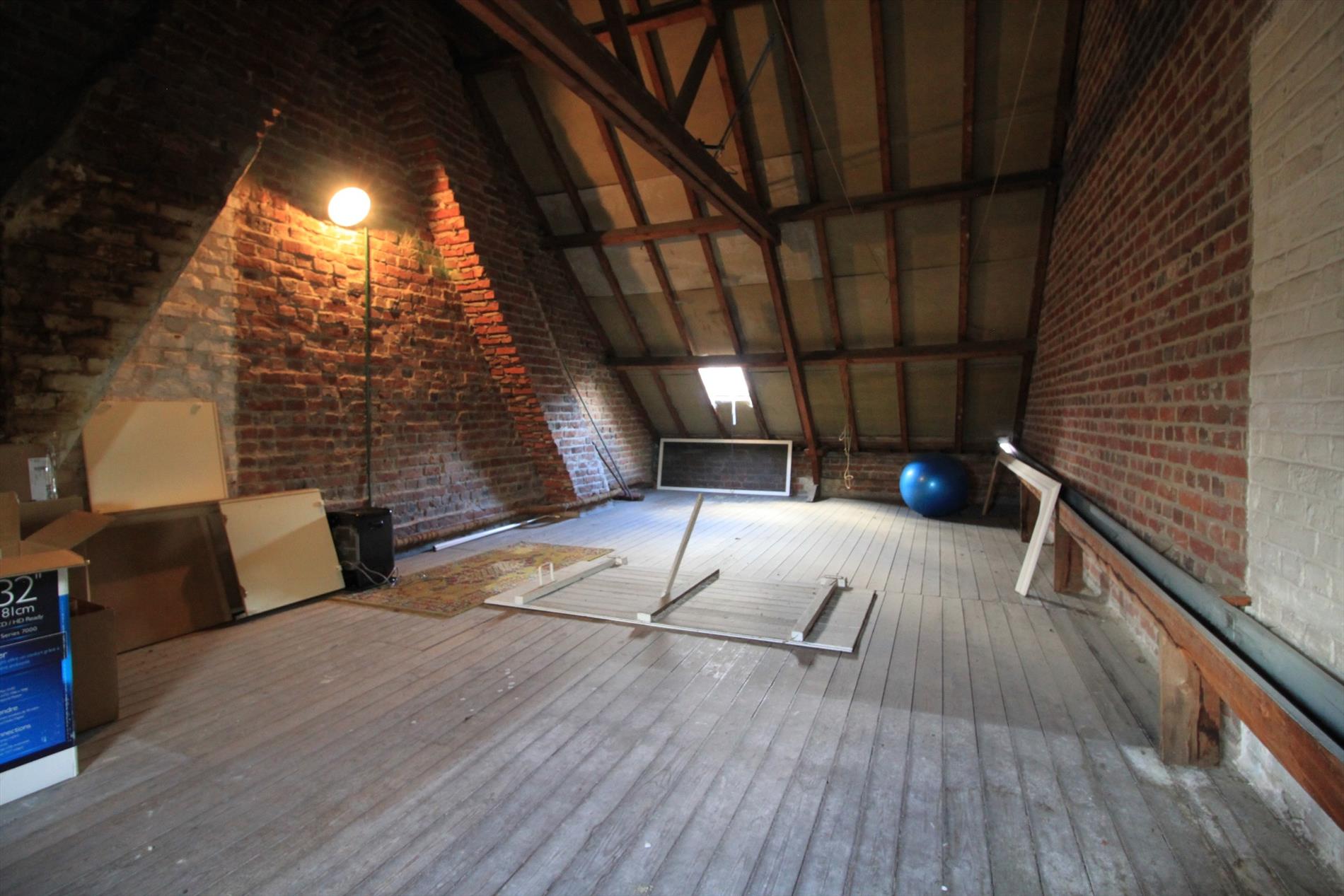 De woning zelf omvat een inkomhal die toegang geeft tot de voorkamer en lichtrijke woonkamer. Verder bevinden zich de keuken, veranda, badkamer en toilet. Op het verdiep zijn er 2 slaapkamers en een zolder die mogelijkheid biedt tot het maken van extra kamers. De woning beschikt over een gezellige stadstuin die volledig zuidgericht is.