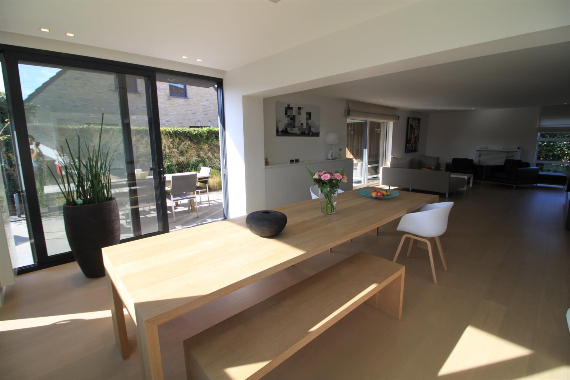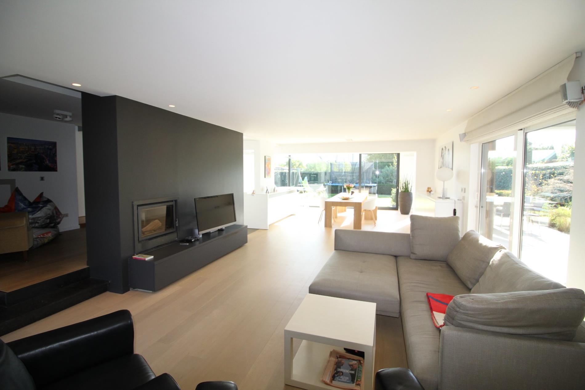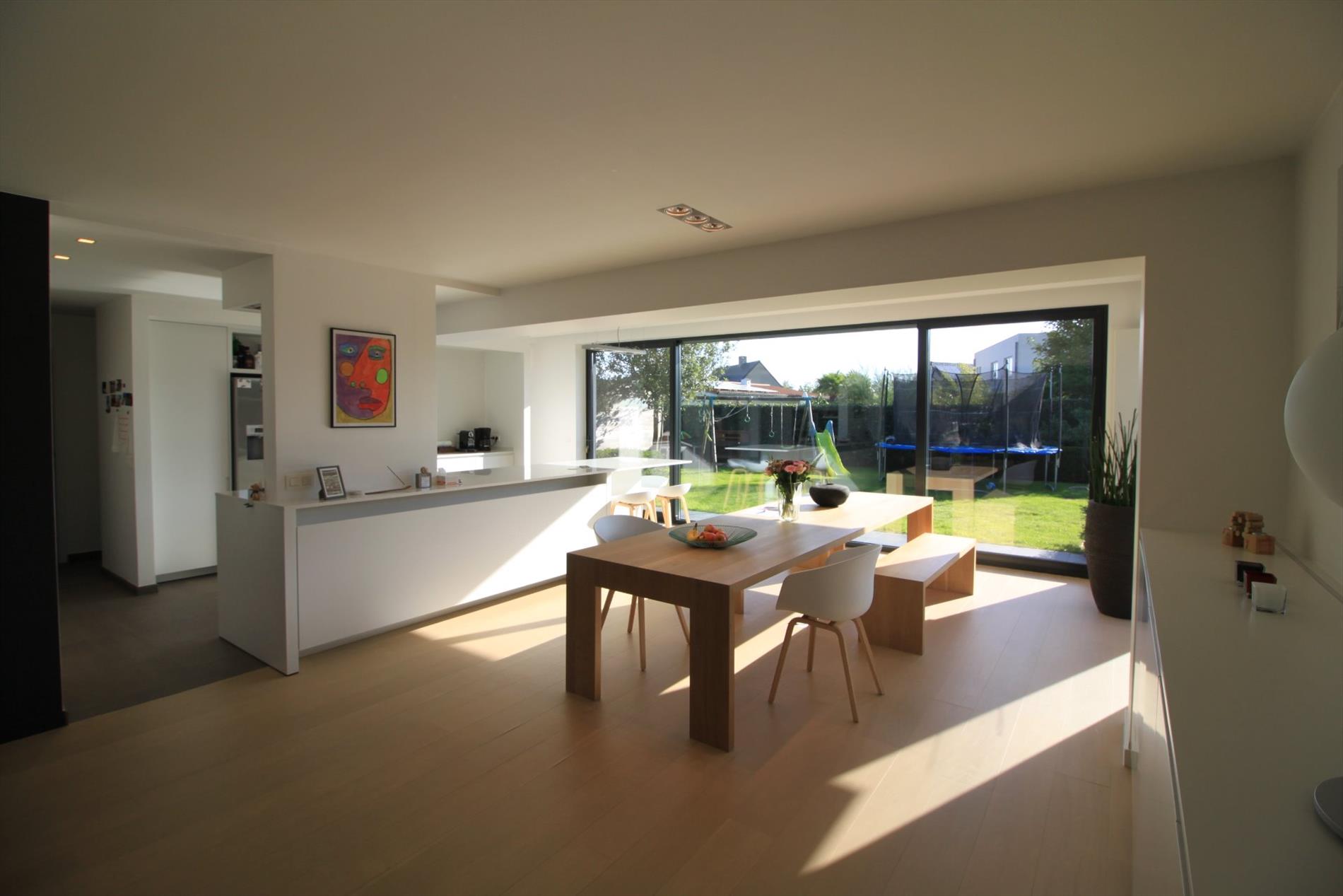 IN OPTIE!! Deze prachtige villa werd in 2015 grotendeels gerenoveerd waardoor deze u heel ruime en lichtrijke ruimtes biedt! Het gelijkvloers omvat een lichtrijke leefruimte met open keuken (kwalitatief geïnstalleerd met o.a. vaatwas, steamer, inductiekookplaten,...). Zowel leefruimte als keuken bieden u zicht op de tuin en geven rechtstreeks toegang tot het terras. U beschikt over zowel een overdekt als niet-overdekt terras waardoor u lange avonden buiten kunt genieten. Tevens vindt u een gezellige leeshoek en een aparte bureelruimte of extra slaapkamer met badkamer (douche en lavabomeubel) op het gelijkvloers. De bovenverdieping biedt u naast de overloop, een 2-persoonskamer, 3 1-persoonskamers en een badkamer met dubbel lavabomeubel, douche én ligbad.