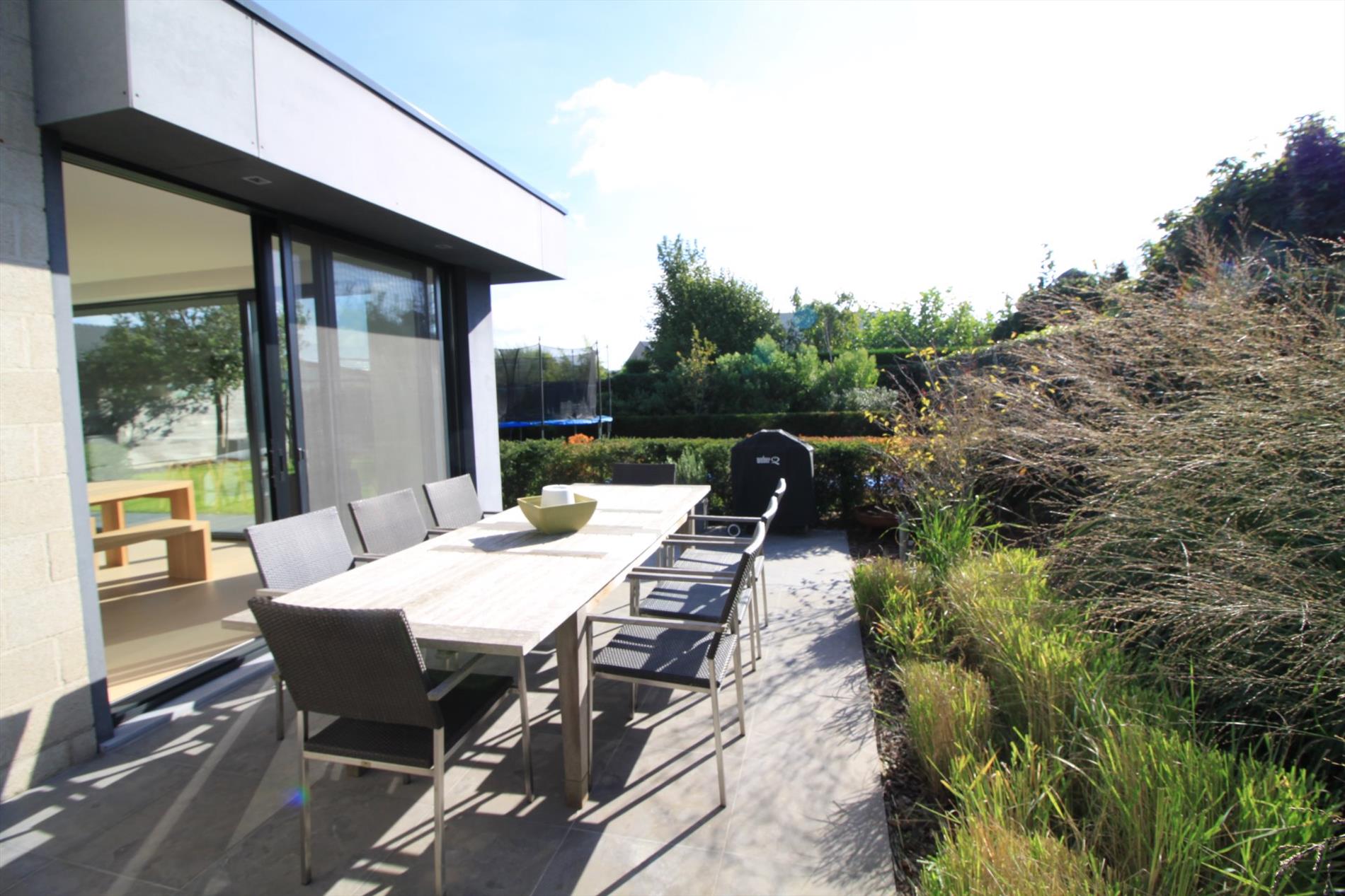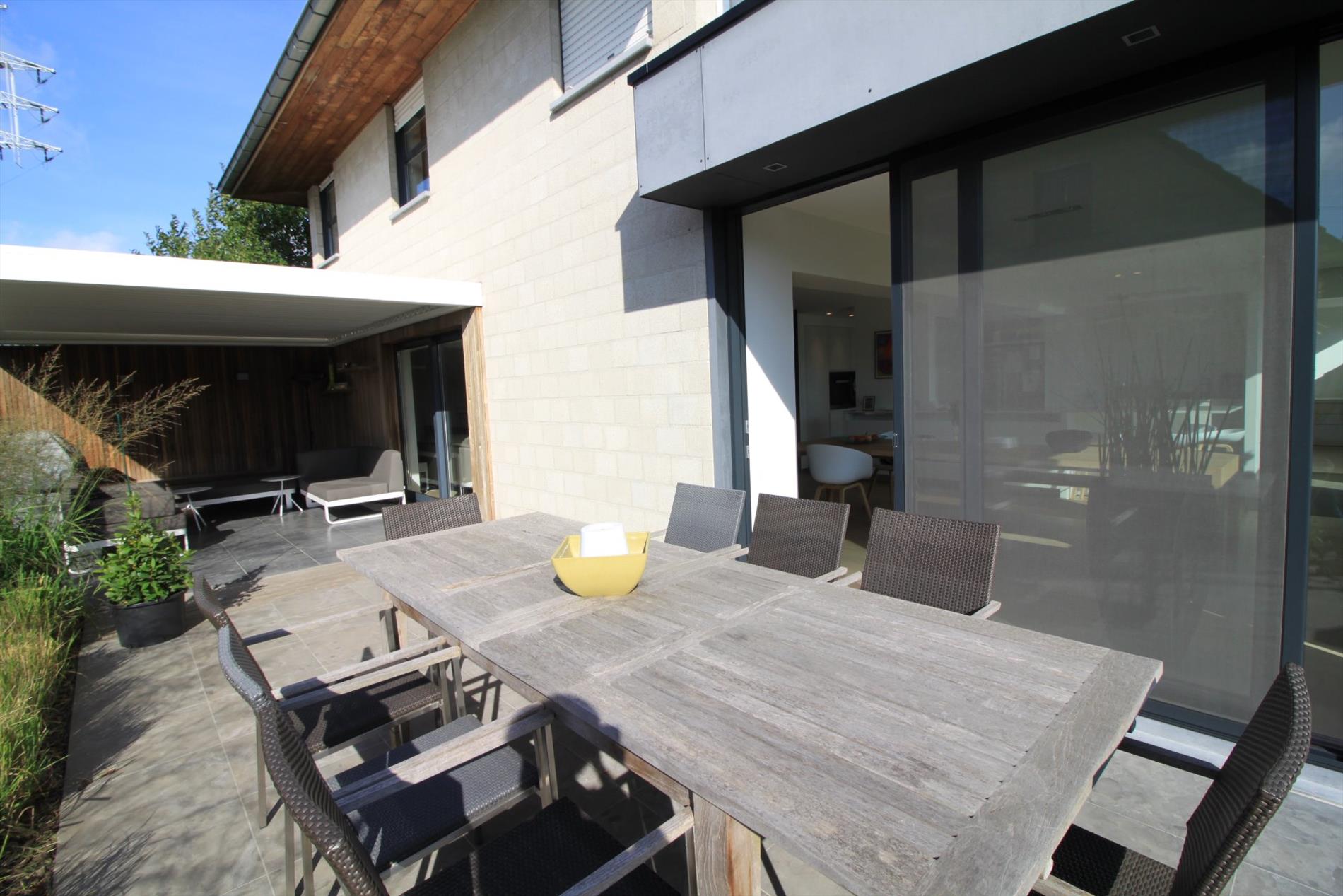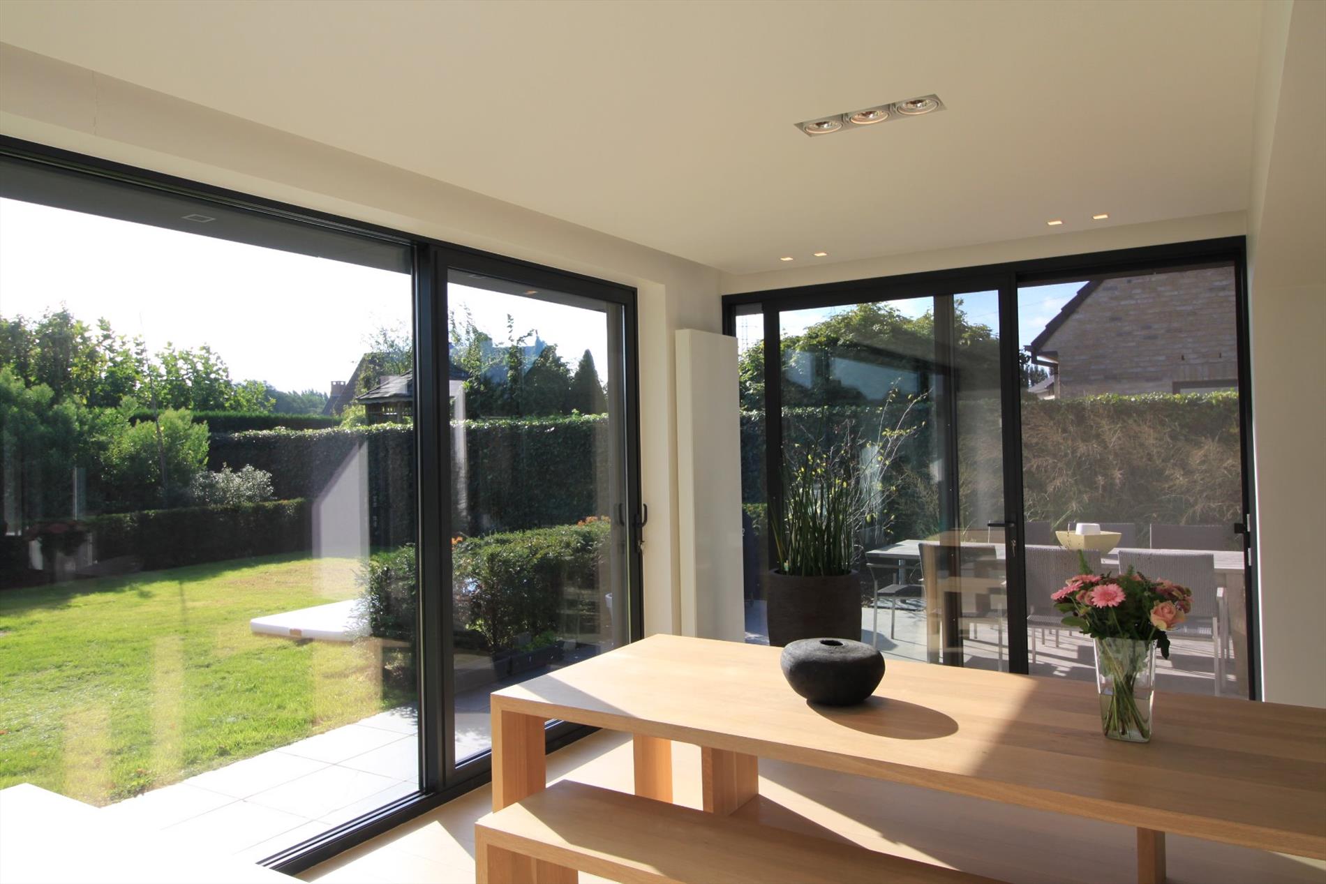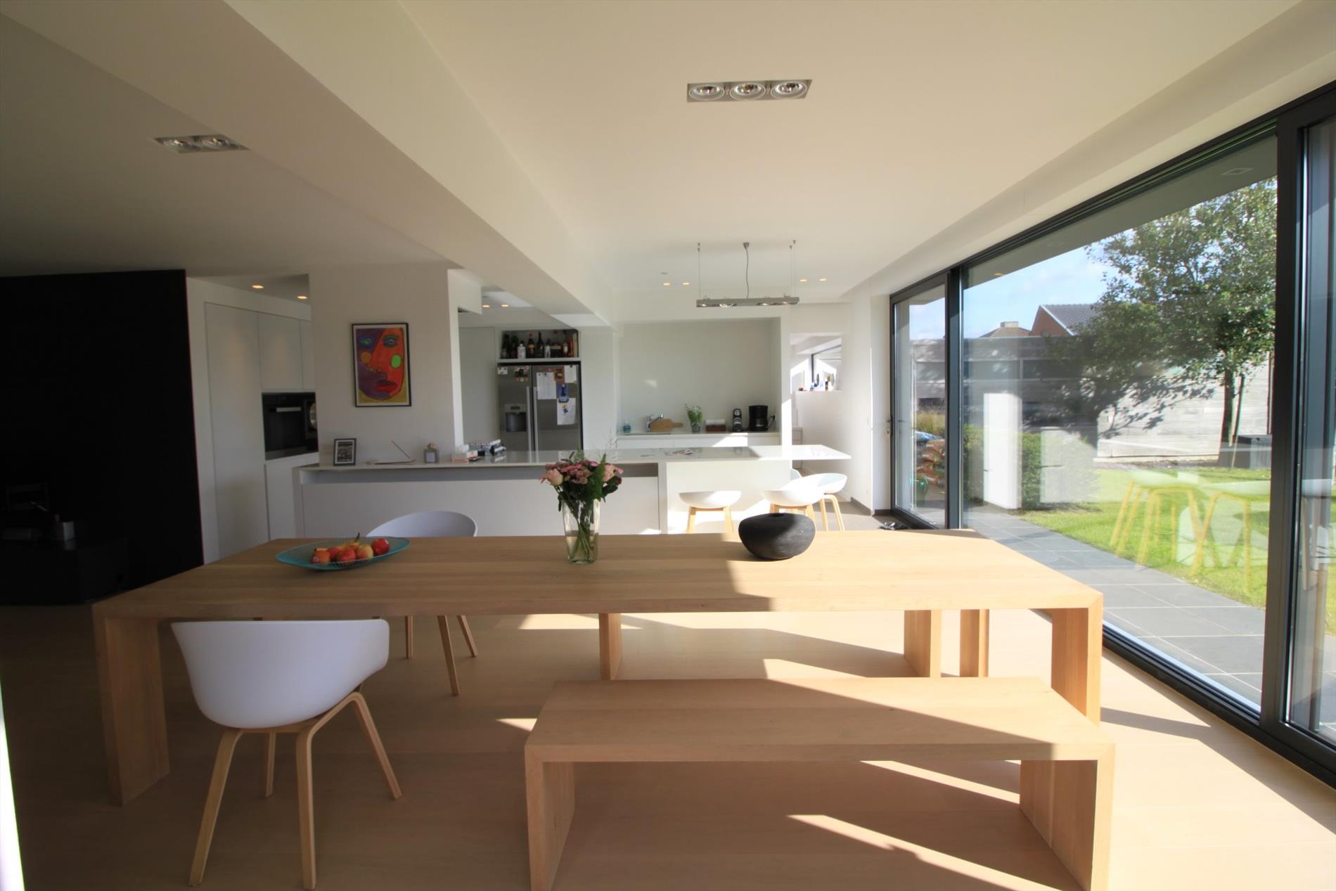 IN OPTIE!! Deze prachtige villa werd in 2015 grotendeels gerenoveerd waardoor deze u heel ruime en lichtrijke ruimtes biedt! Het gelijkvloers omvat een lichtrijke leefruimte met open keuken (kwalitatief geïnstalleerd met o.a. vaatwas, steamer, inductiekookplaten,...). Zowel leefruimte als keuken bieden u zicht op de tuin en geven rechtstreeks toegang tot het terras. U beschikt over zowel een overdekt als niet-overdekt terras waardoor u lange avonden buiten kunt genieten. Tevens vindt u een gezellige leeshoek en een aparte bureelruimte of extra slaapkamer met badkamer (douche en lavabomeubel) op het gelijkvloers. De bovenverdieping biedt u naast de overloop, een 2-persoonskamer, 3 1-persoonskamers en een badkamer met dubbel lavabomeubel, douche én ligbad.